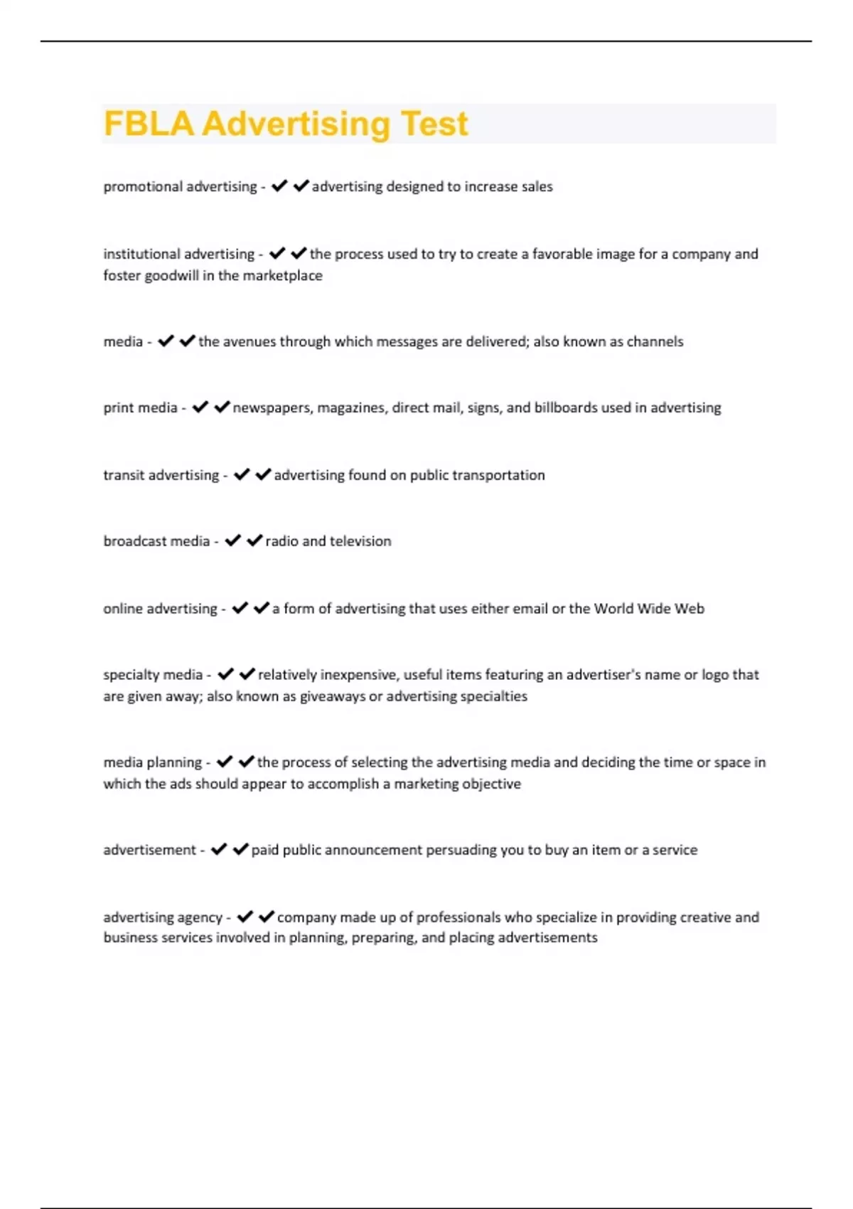 FBLA Advertising Test Questions With 100% Correct Answers.