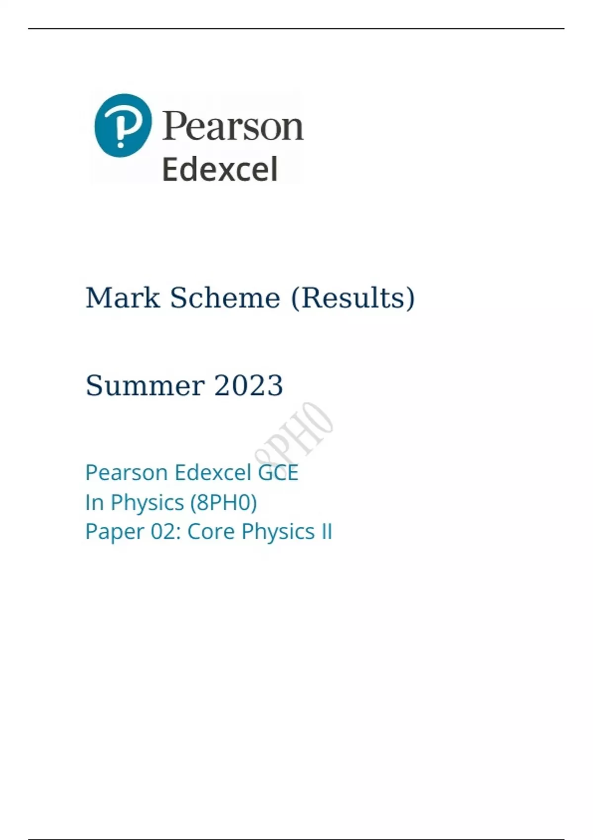 Pearson Edexcel GCE In Physics (8PH0) Paper 02: Core Physics II Summer 2023 Final mark scheme