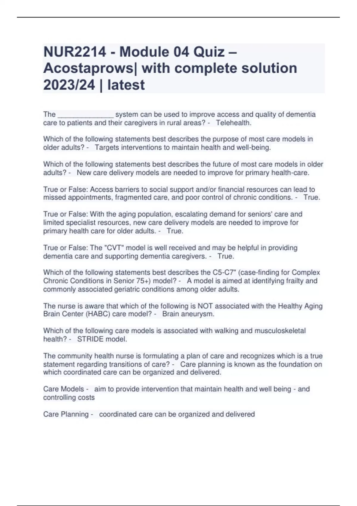 NUR2214 - Module 04 Quiz – Acostaprows| with complete solution 2023/24 | latest