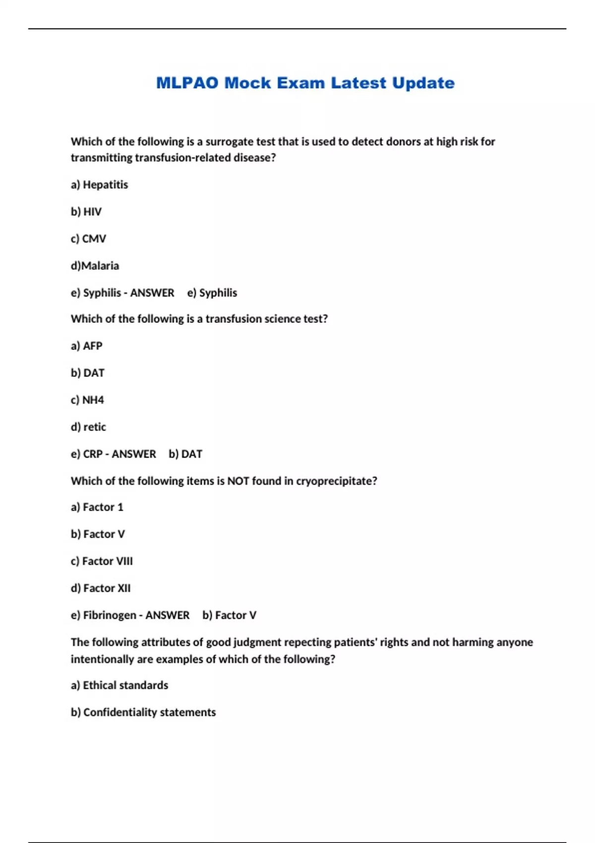mlpao mock exam latest update
