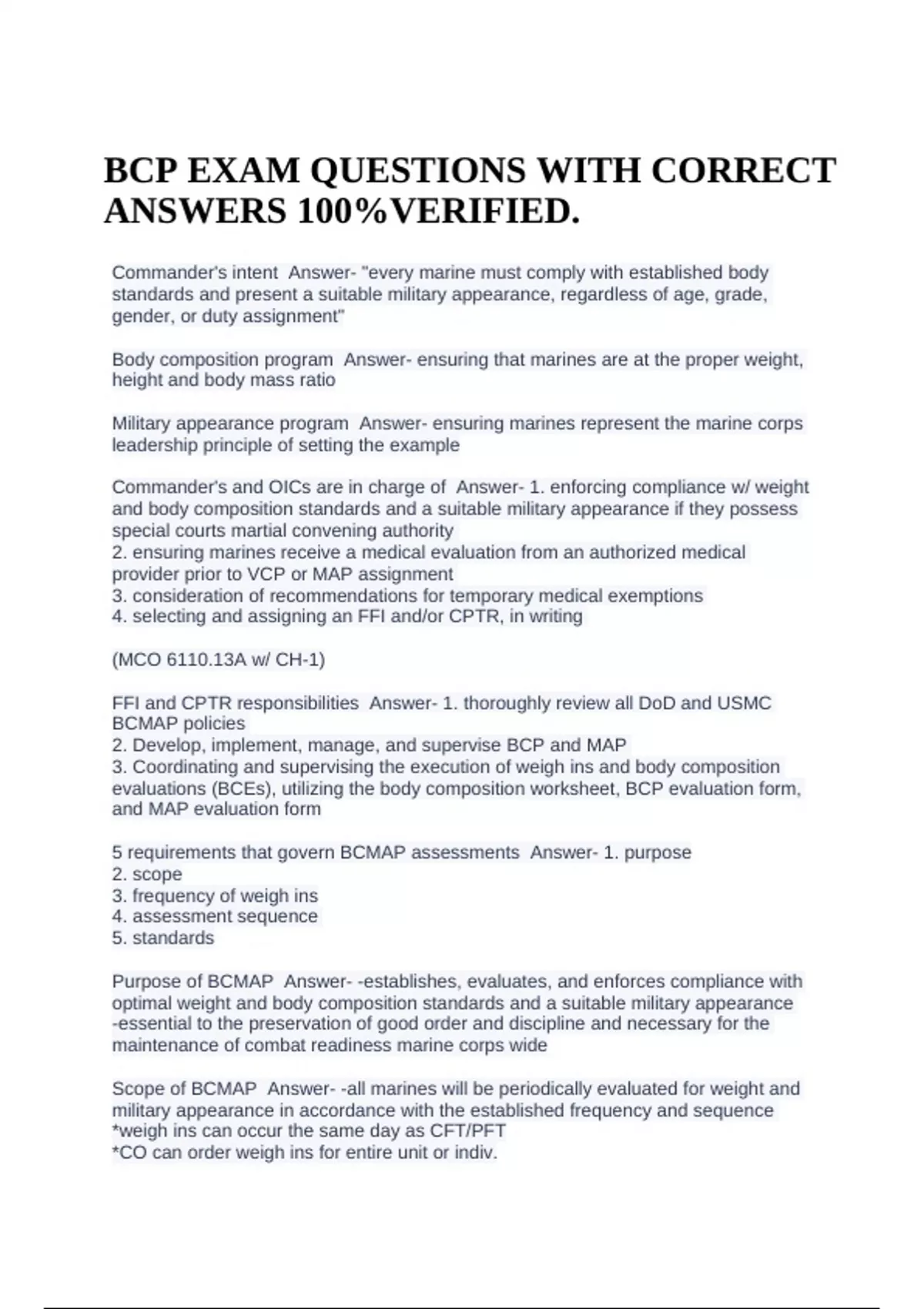 BODY COMPOSITION PROGRAM/ BCP EXAM QUESTIONS WITH CORRECT ANSWERS 100%VERIFIED.