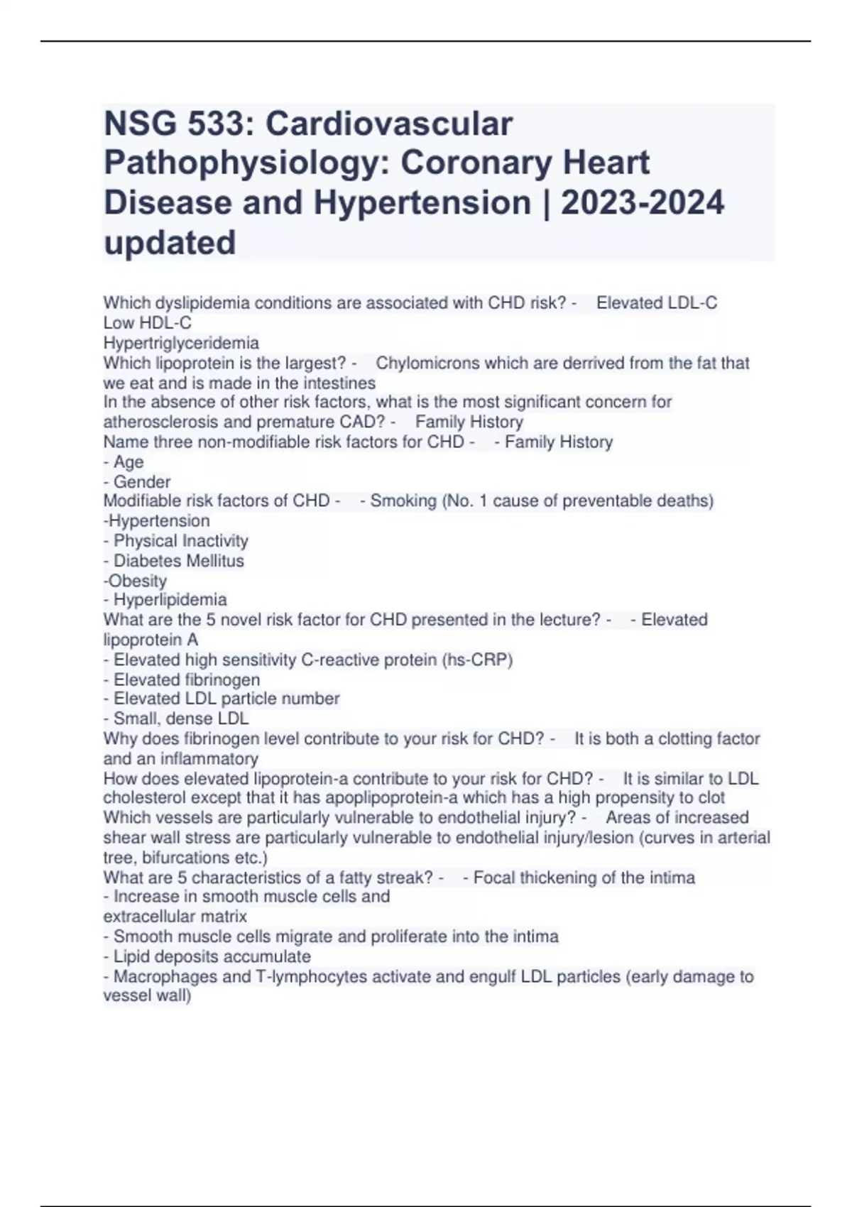 NSG 533: Cardiovascular Pathophysiology: Coronary Heart Disease and Hypertension | updated