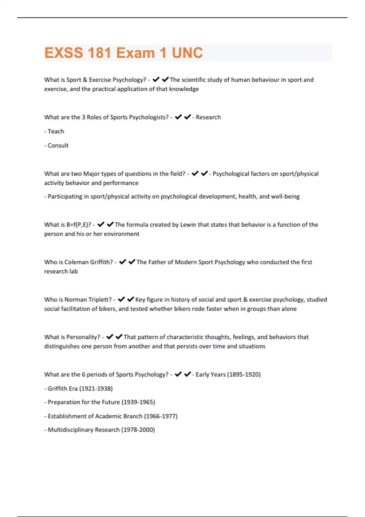 EXSS 181 Exam 1 UNC Questions And Answers Already Graded A+