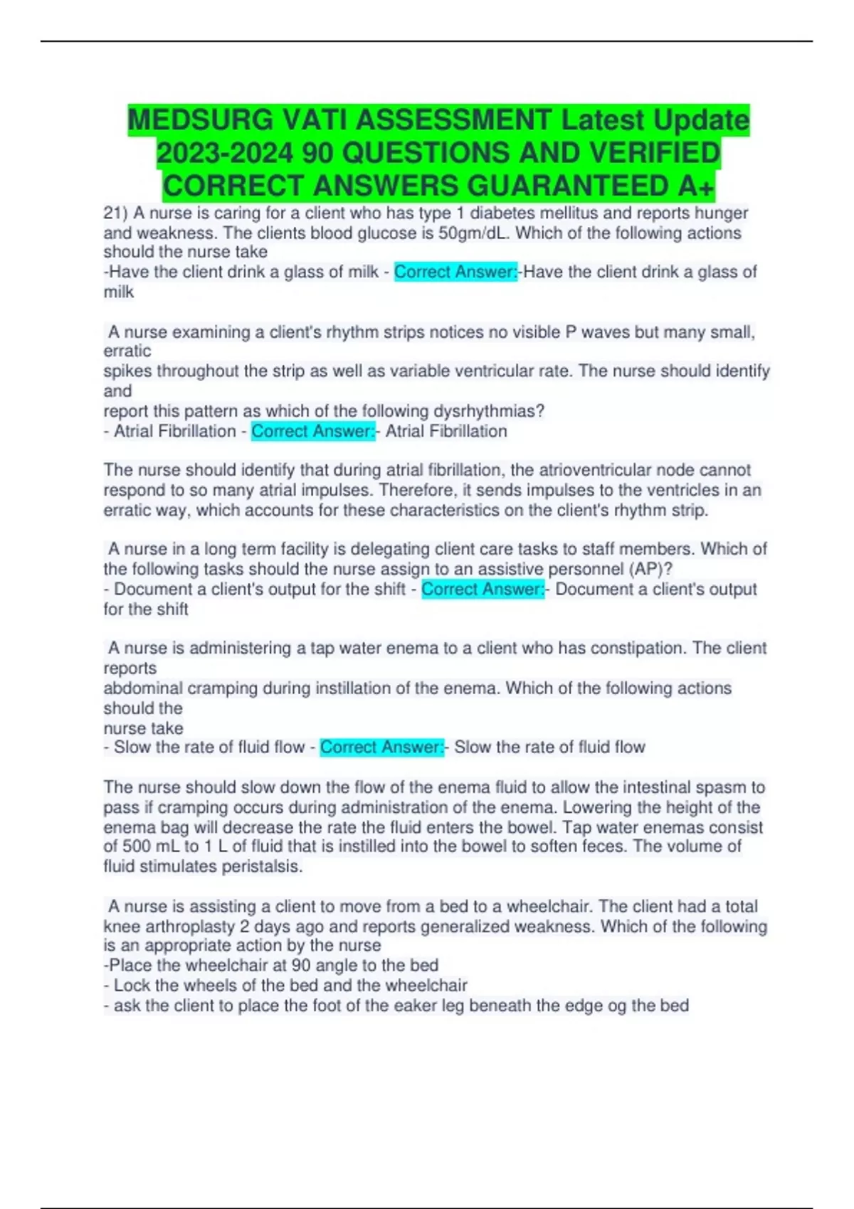 MEDSURG VATI ASSESSMENT Latest Update QUESTIONS AND VERIFIED CORRECT ANSWERS GUARANTEED A+