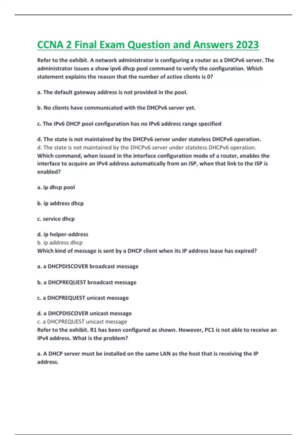 CCNA 2 Final Exam Question and Answers 2023
