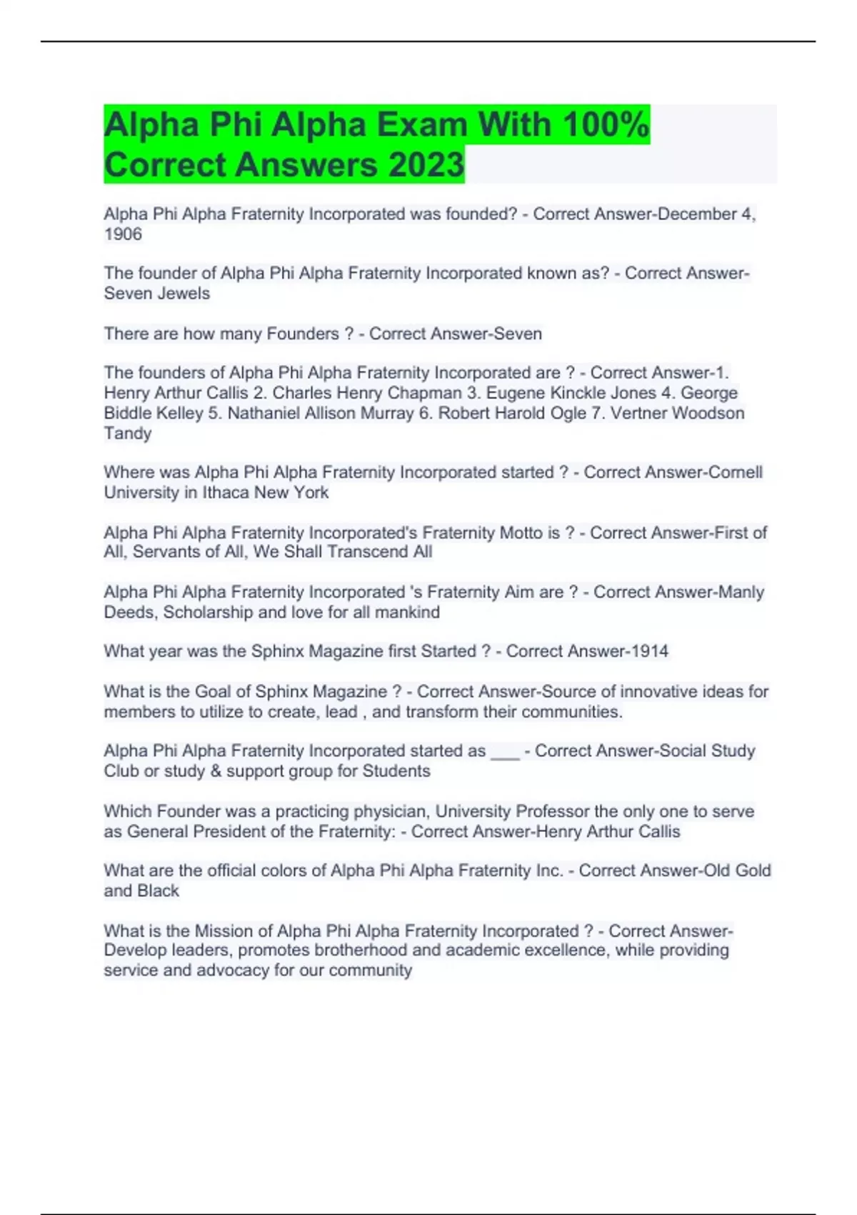Alpha Phi Alpha Exam With 100% Correct Answers 2023