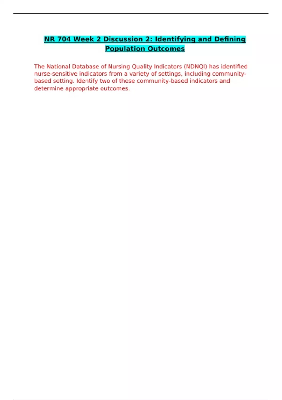 NR-704 WEEK 2 DISCUSSION 2 CORRECTLY ANSWERED /LATEST UPDATE VERSION/ GRADED A+