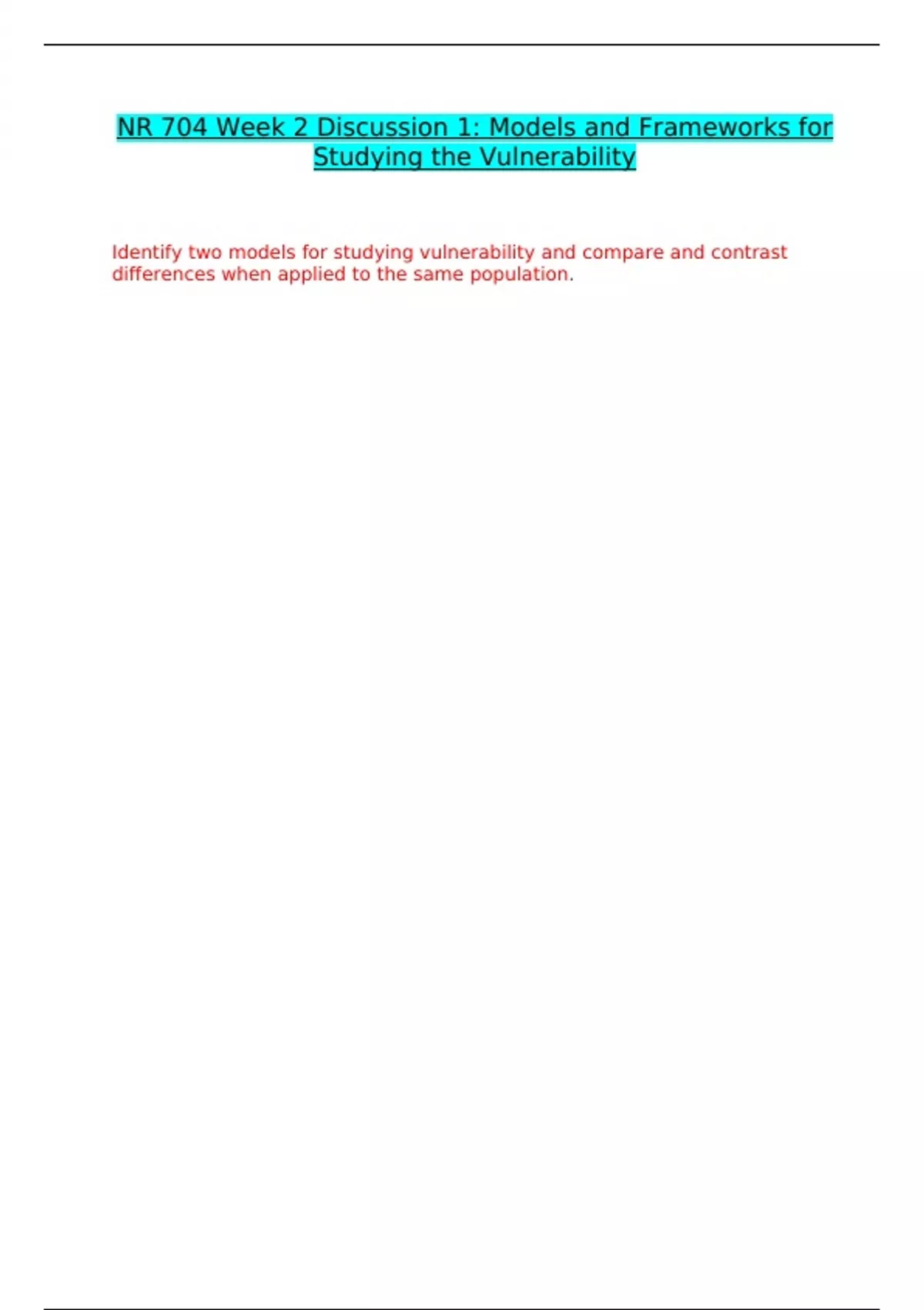 NR-704 WEEK 2 DISCUSSION 1 CORRECTLY ANSWERED /LATEST UPDATE VERSION/ GRADED A+
