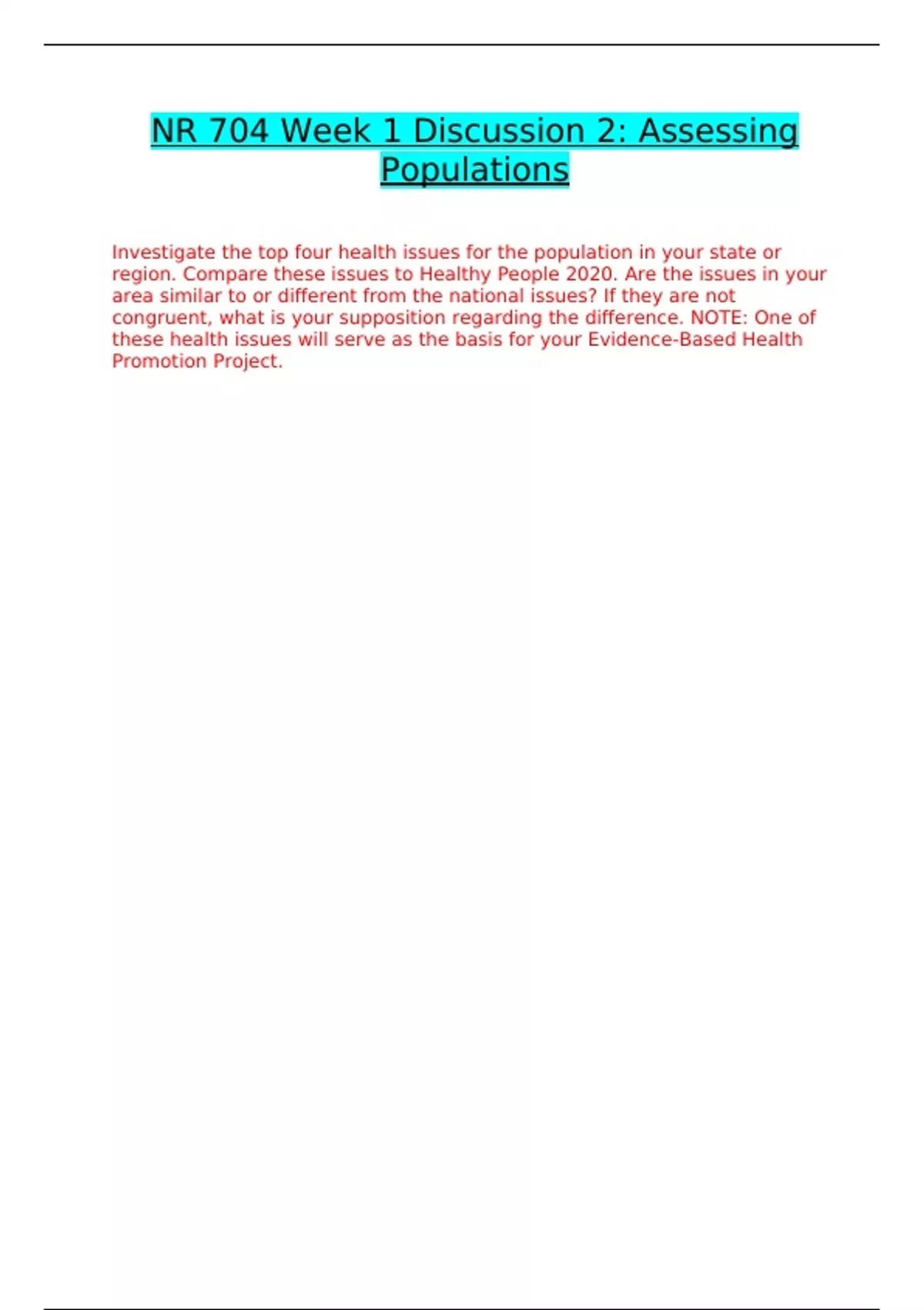 NR-704 WEEK 1 DISCUSSION 2 CORRECTLY ANSWERED /LATEST UPDATE VERSION/ GRADED A+