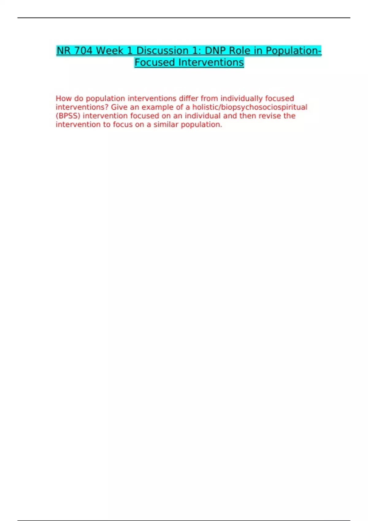 NR-704 WEEK 1 DISCUSSION 1 CORRECTLY ANSWERED /LATEST UPDATE VERSION/ GRADED A+