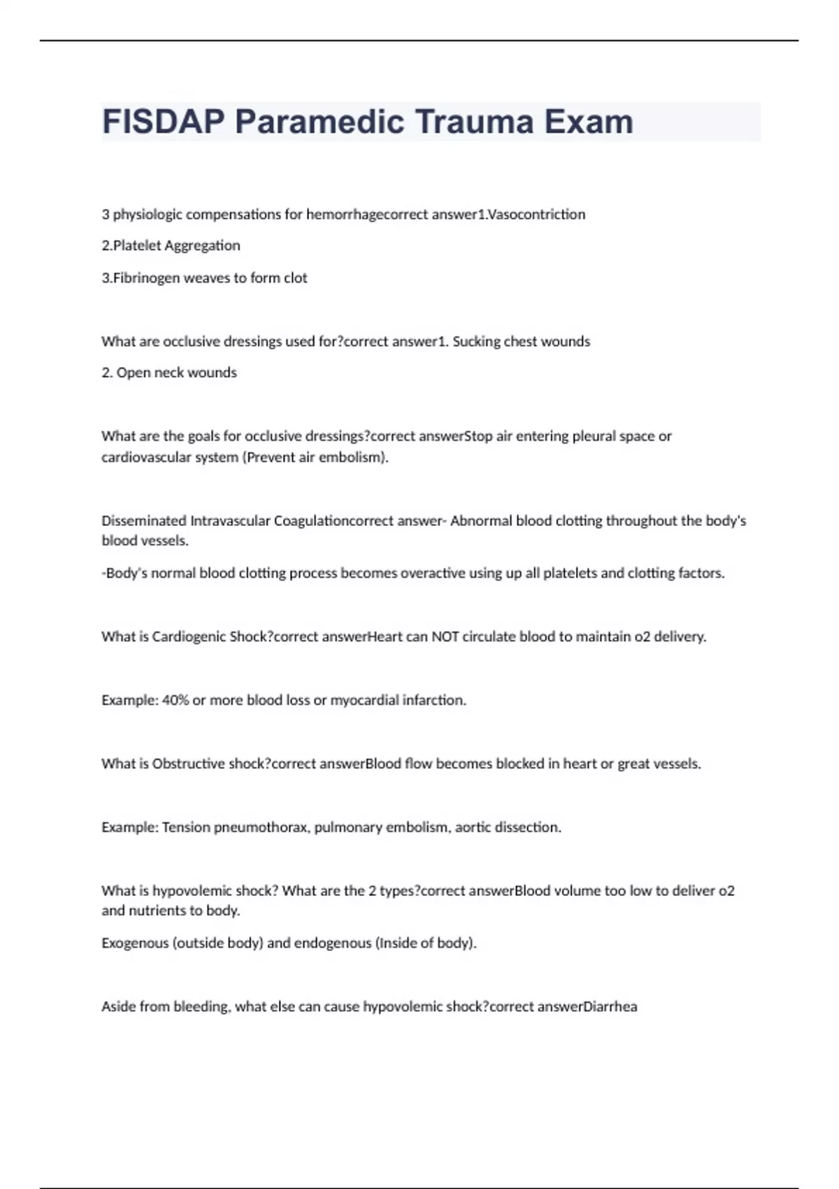FISDAP Paramedic Trauma Exam with correct answers