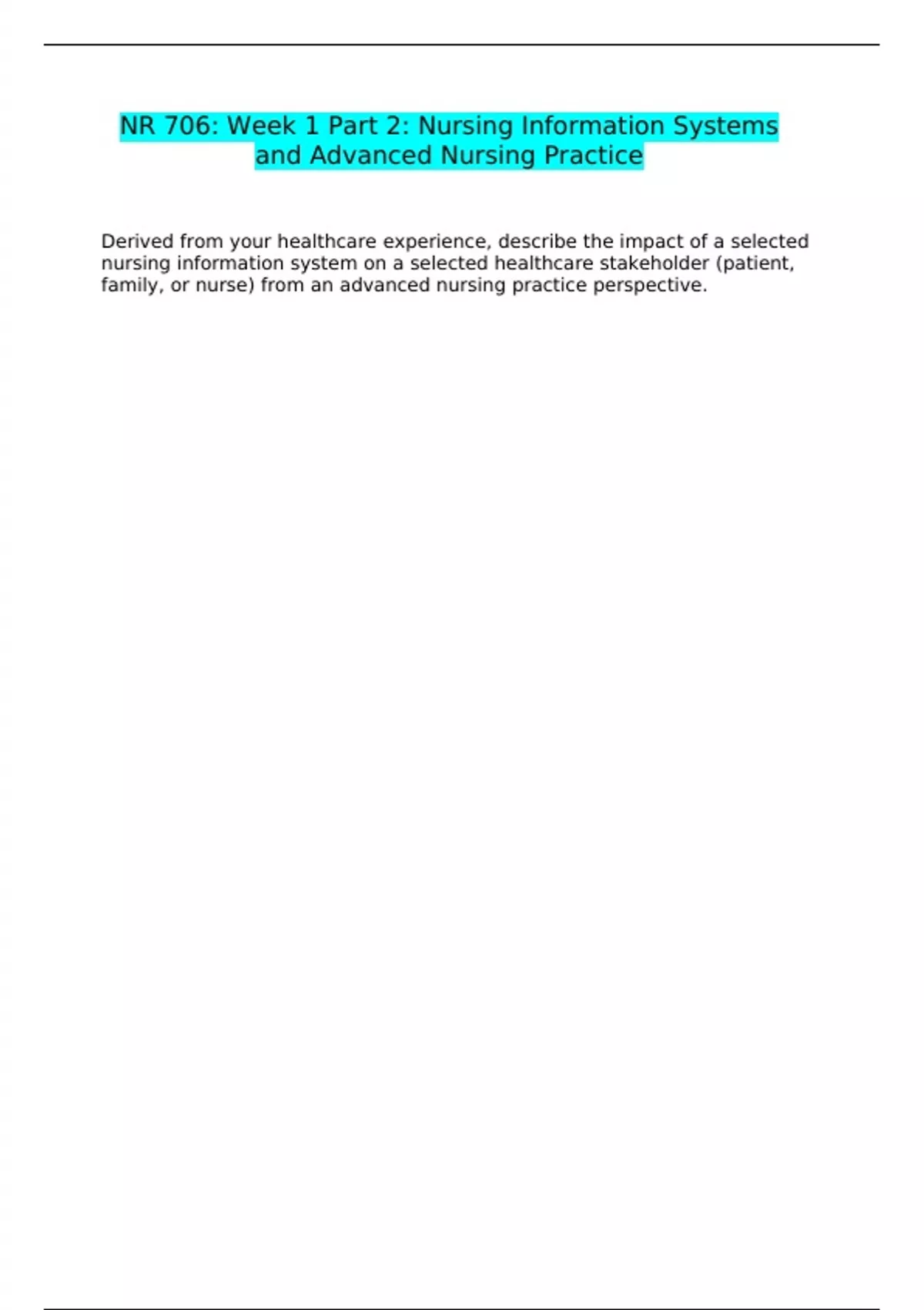 NR 706 WEEK 1 PART 2 CORRECTLY ANSWERED /LATEST UPDATE VERSION/ GRADED A+