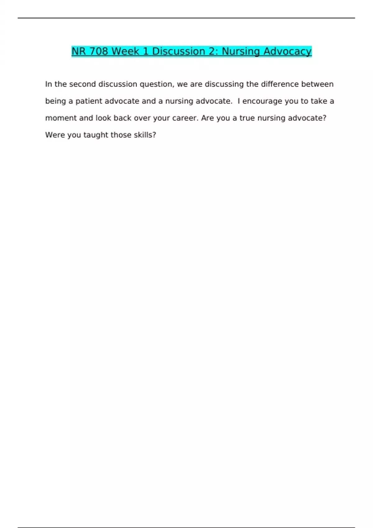 NR 708 WEEK 1 DISCUSSION 2 CORRECTLY ANSWERED /LATEST UPDATE VERSION/ GRADED A+