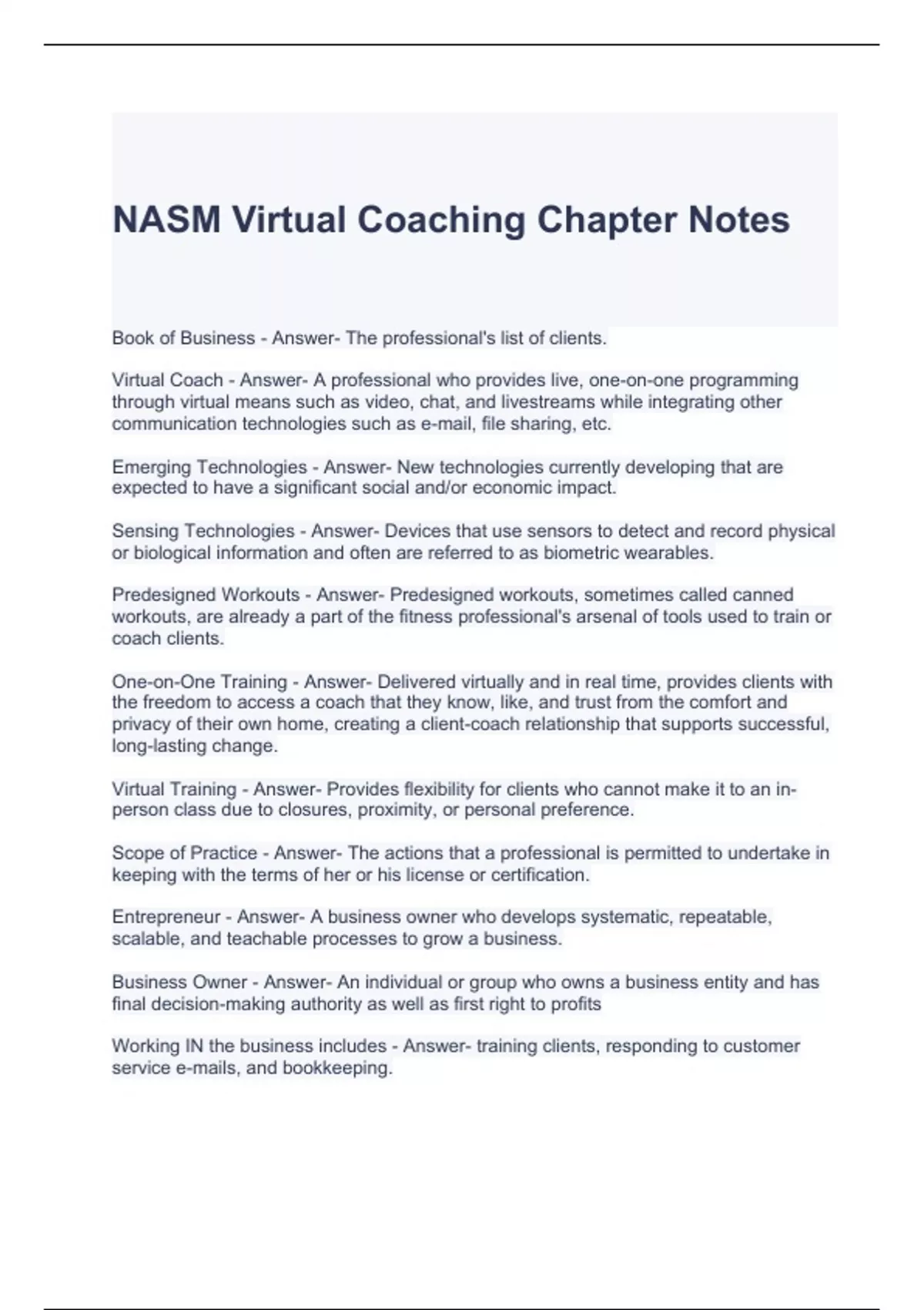 NASM Virtual Coaching Chapter Notes Exam Questions with correct Answers