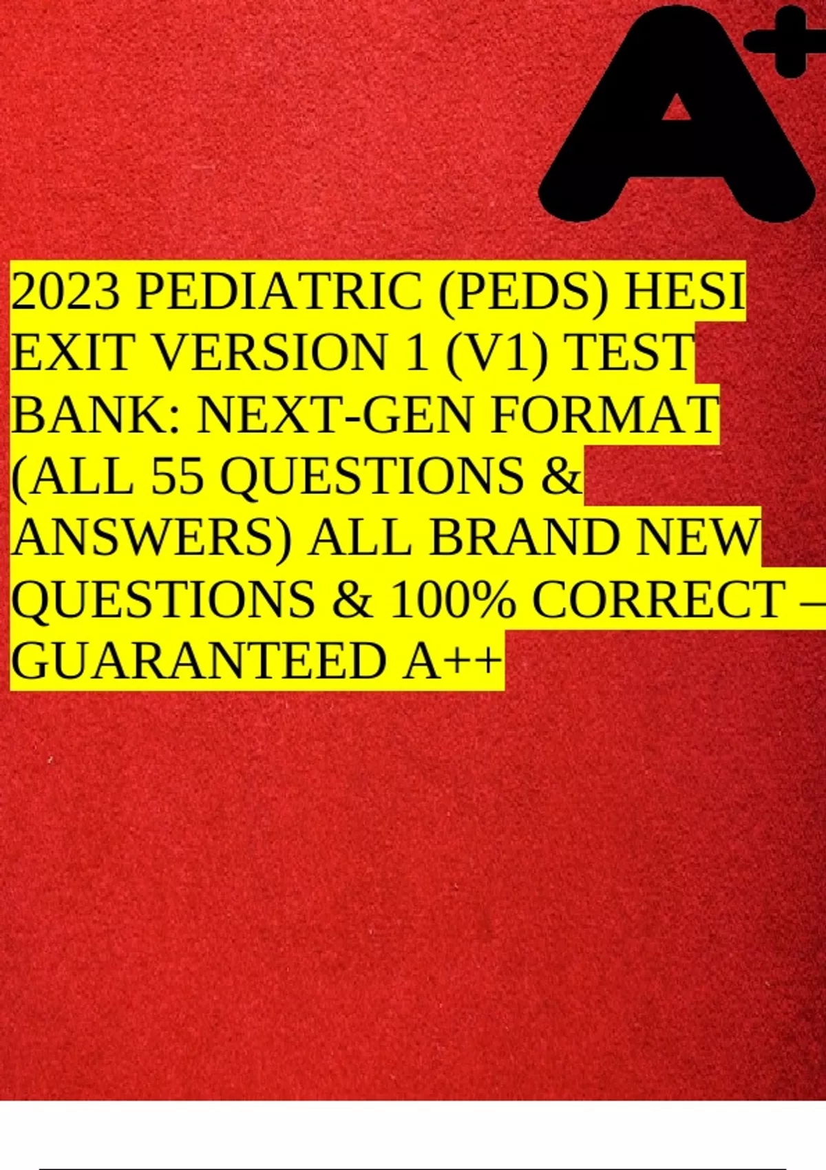 2023 PEDIATRIC (PEDS) HESI EXIT VERSION 1 (V1) TEST BANK: NEXT-GEN FORMAT (ALL 55 QUESTIONS & ANSWERS) ALL BRAND NEW QUESTIONS & 100% CORRECT – GUARANTEED A++