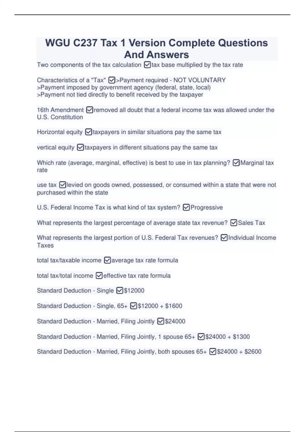 WGU C237 Tax 1 Version Complete Questions And Answers