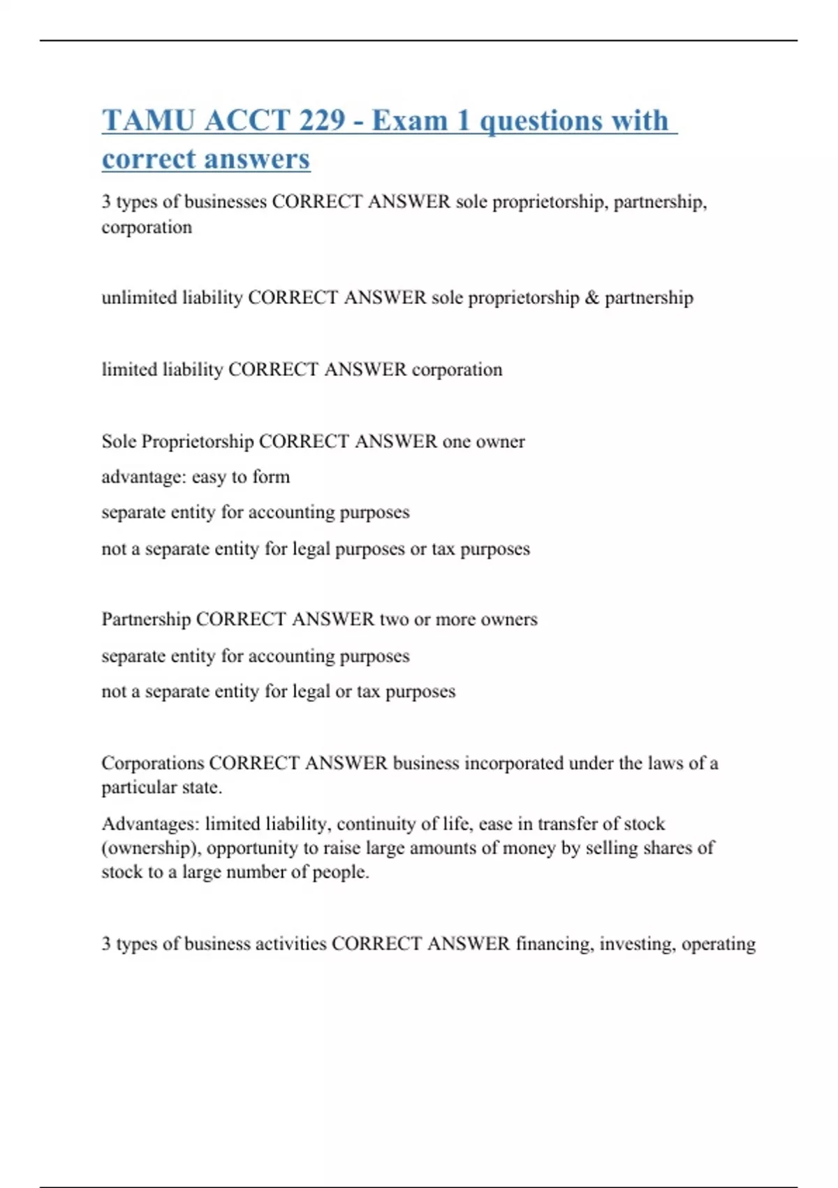 TAMU ACCT 229 - Exam 1 questions with correct answers