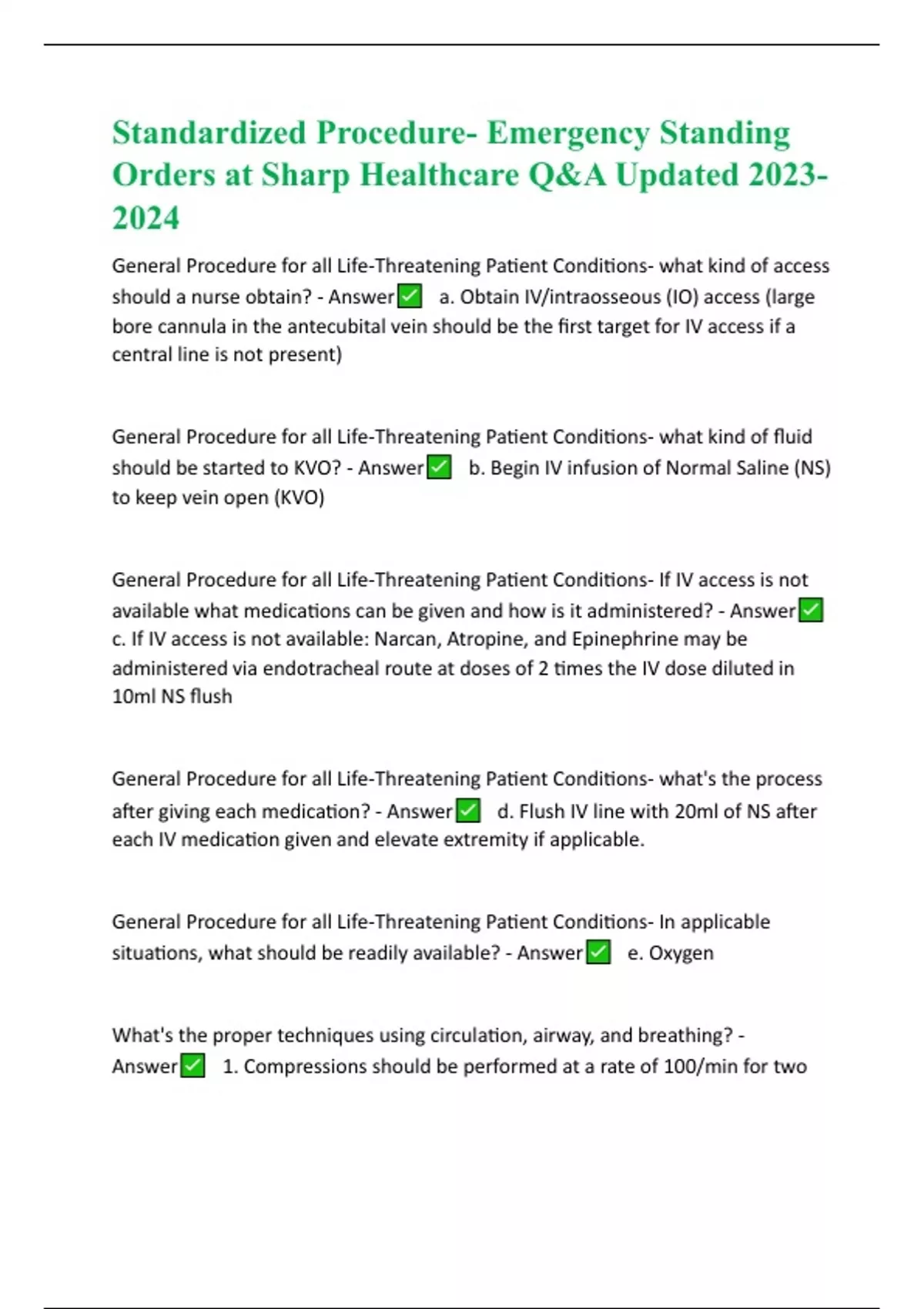 Standardized Procedure- Emergency Standing Orders at Sharp Healthcare Q&A Updated