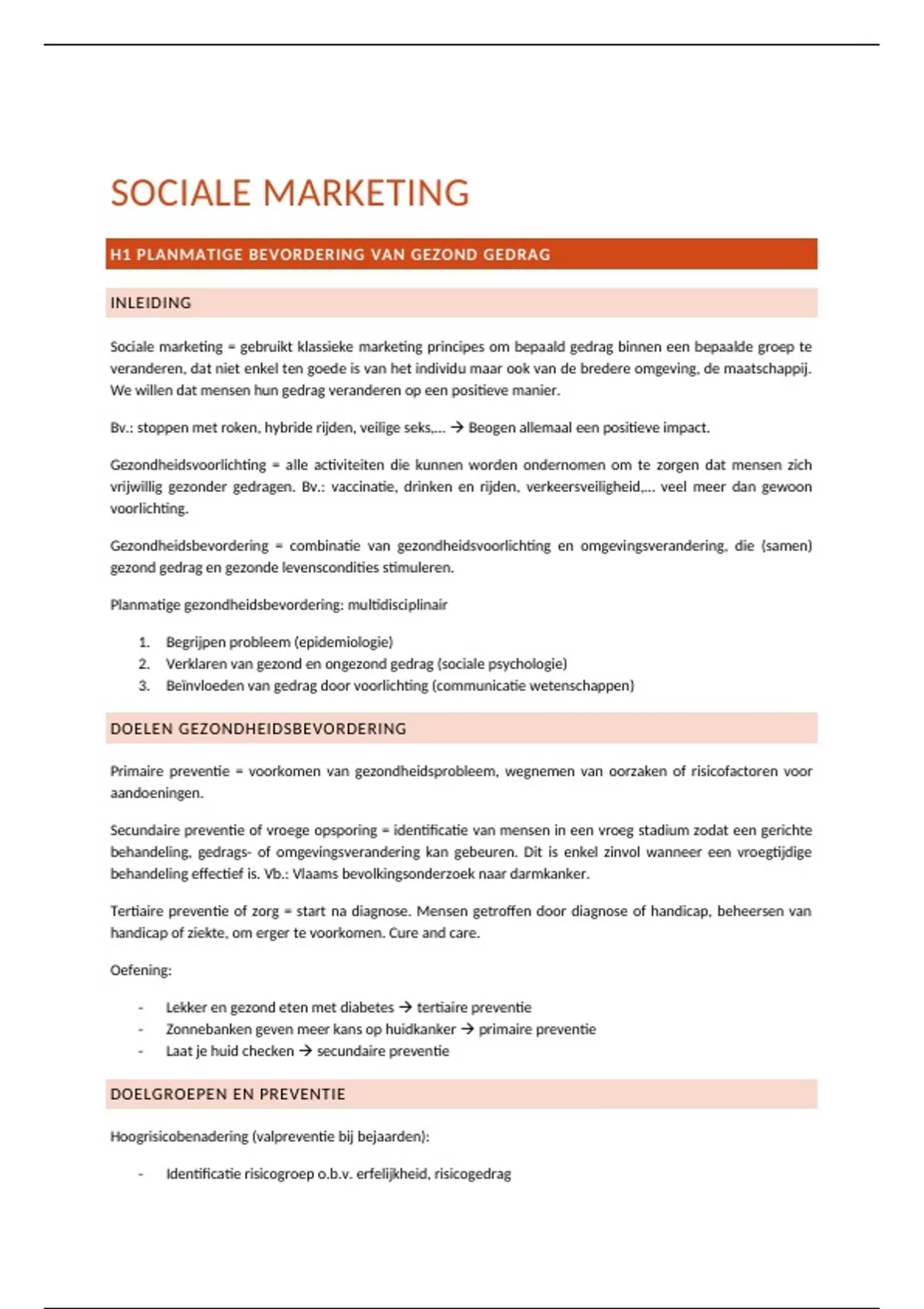 Sociale marketing = gebruikt klassieke marketing principes om bepaald gedrag binnen een bepaalde groep te