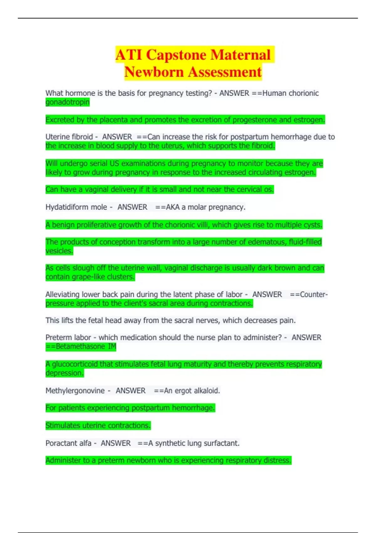 ATI Capstone Maternal Newborn Assessment CORRECT ANSWERS
