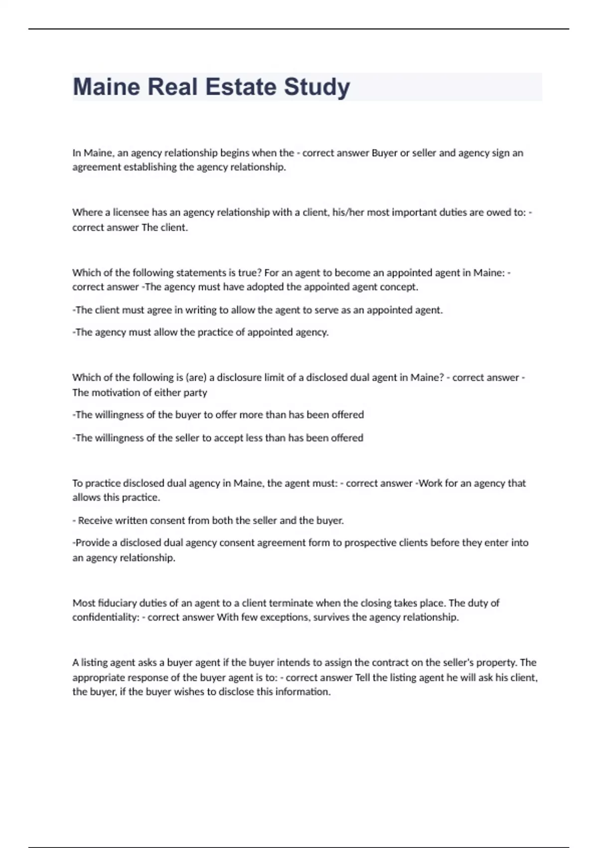 Maine Real Estate Study fully solved graded A+ 2023/2024