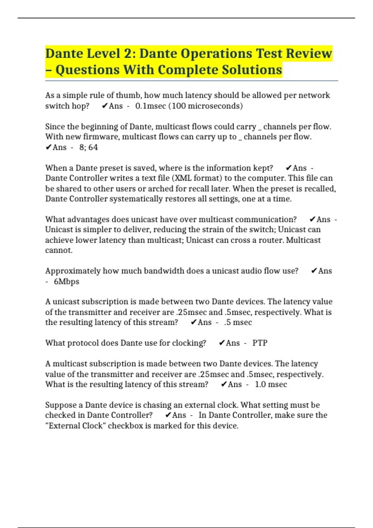Dante Level 2: Dante Operations Test Review – Questions With Complete Solutions