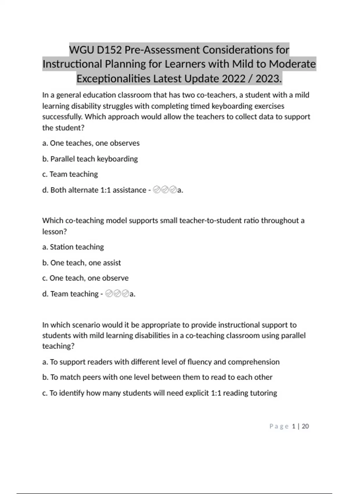WGU D152 Pre-Assessment Considerations for Instructional Planning for Learners with Mild to Moderate Exceptionalities Latest Update .