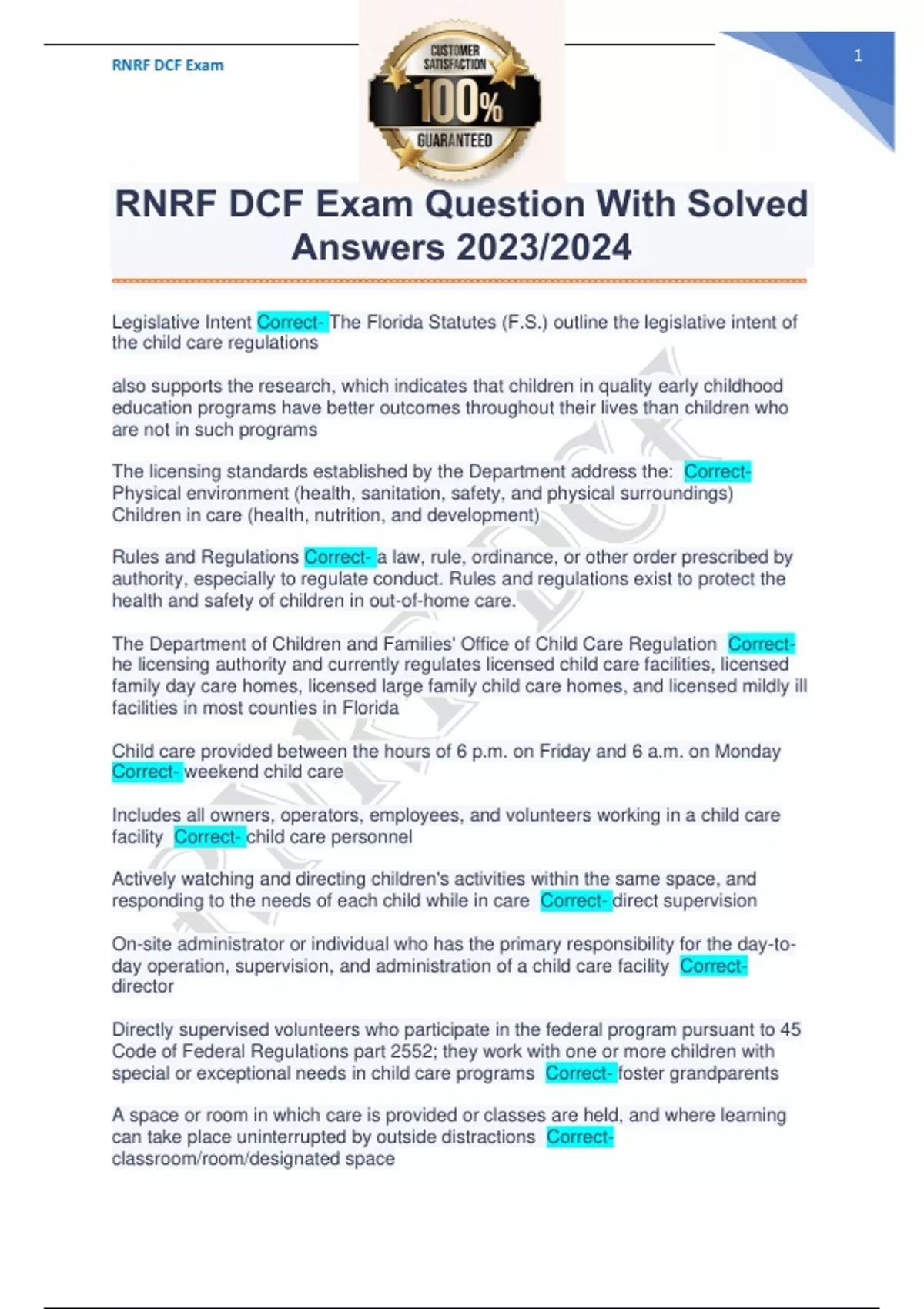 RNRF DCF Exam Question With Solved Answers 2023/2024 RNRF DCF Exam Question With Solved Answers 2023/2024
