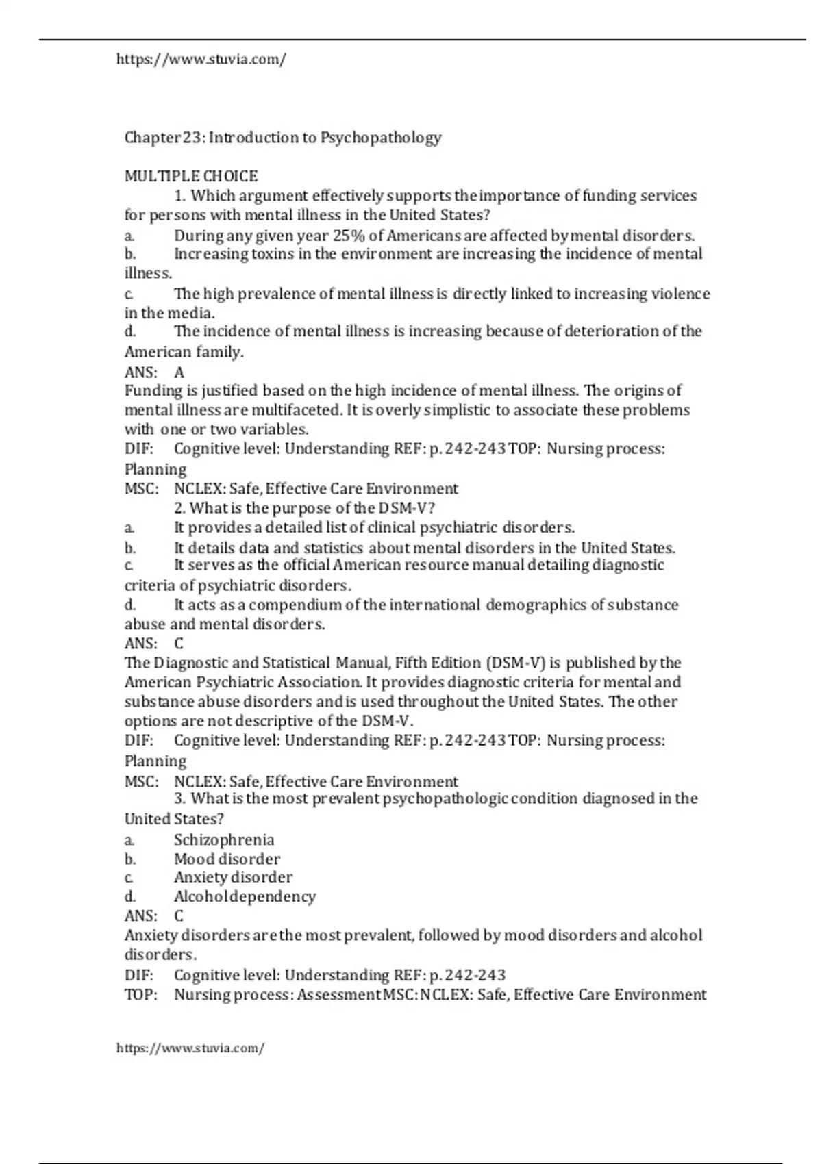 Test Bank For Keltner’s Psychiatric Nursing, 9th Edition By Debbie Steele Chapter 23 Introduction to Psychopathology