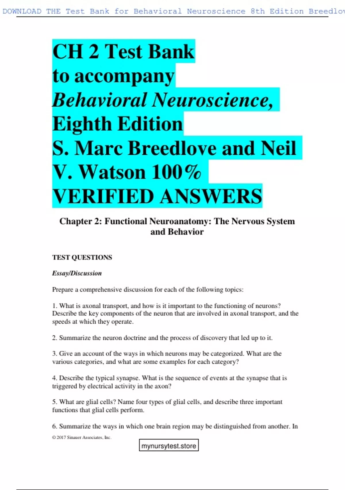 CH 2 Test Bank to accompany Behavioral Neuroscience, Eighth Edition S. Marc Breedlove and Neil V. Watson 100% VERIFIED ANSWERS
