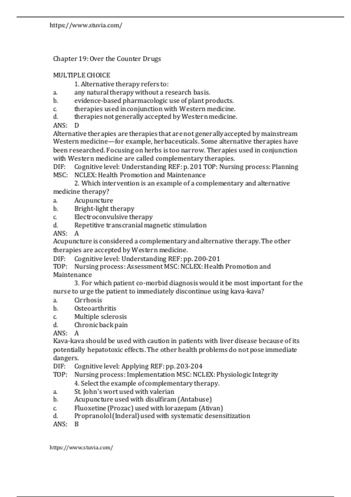 Test Bank For Keltner’s Psychiatric Nursing, 9th Edition By Debbie Steele Chapter 19 Over the Counter Drugs