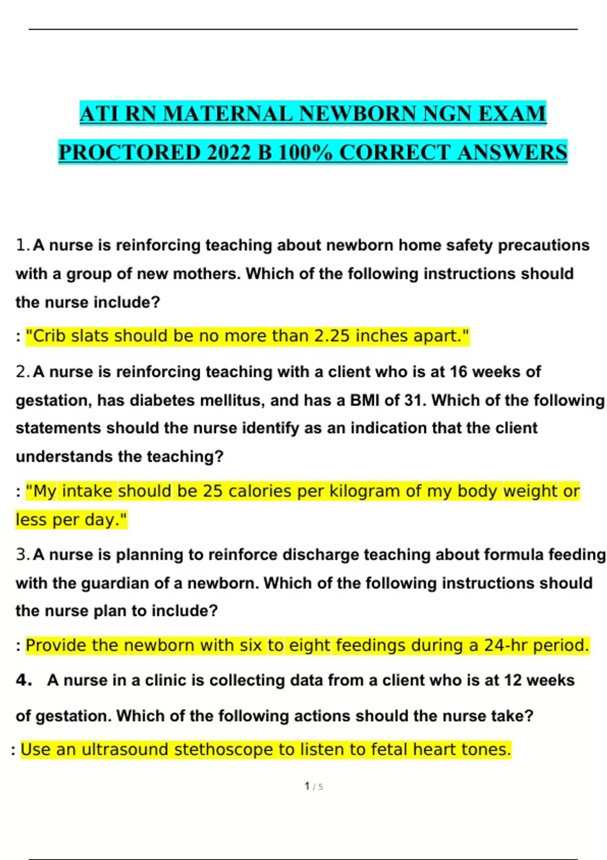 ATI RN MATERNAL NEWBORN NGN EXAM PROCTORED 2022 B 100% CORRECT ANSWERS