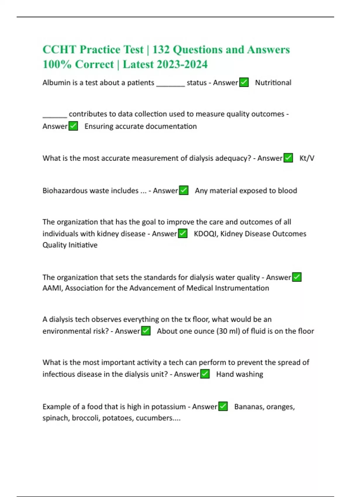 CCHT Practice Test | 132 Questions and Answers 100% Correct | Latest