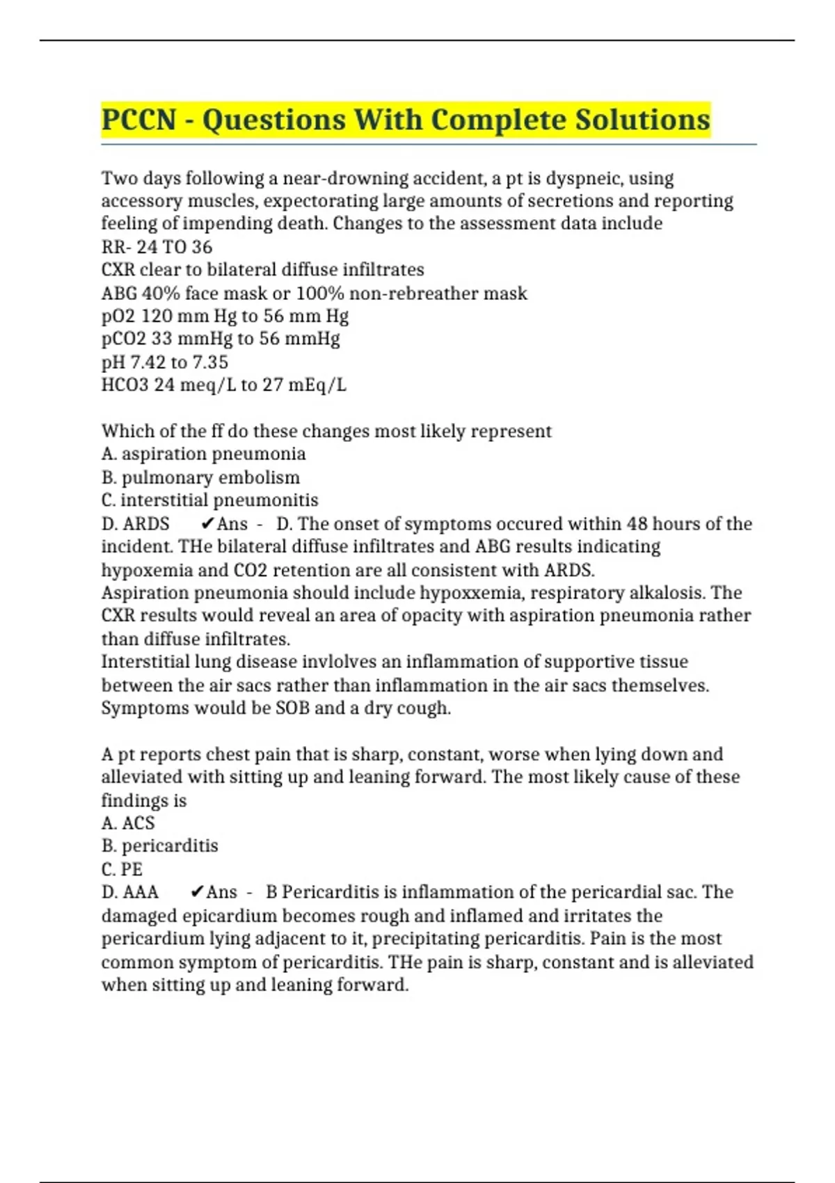 pccn questions with complete solutions