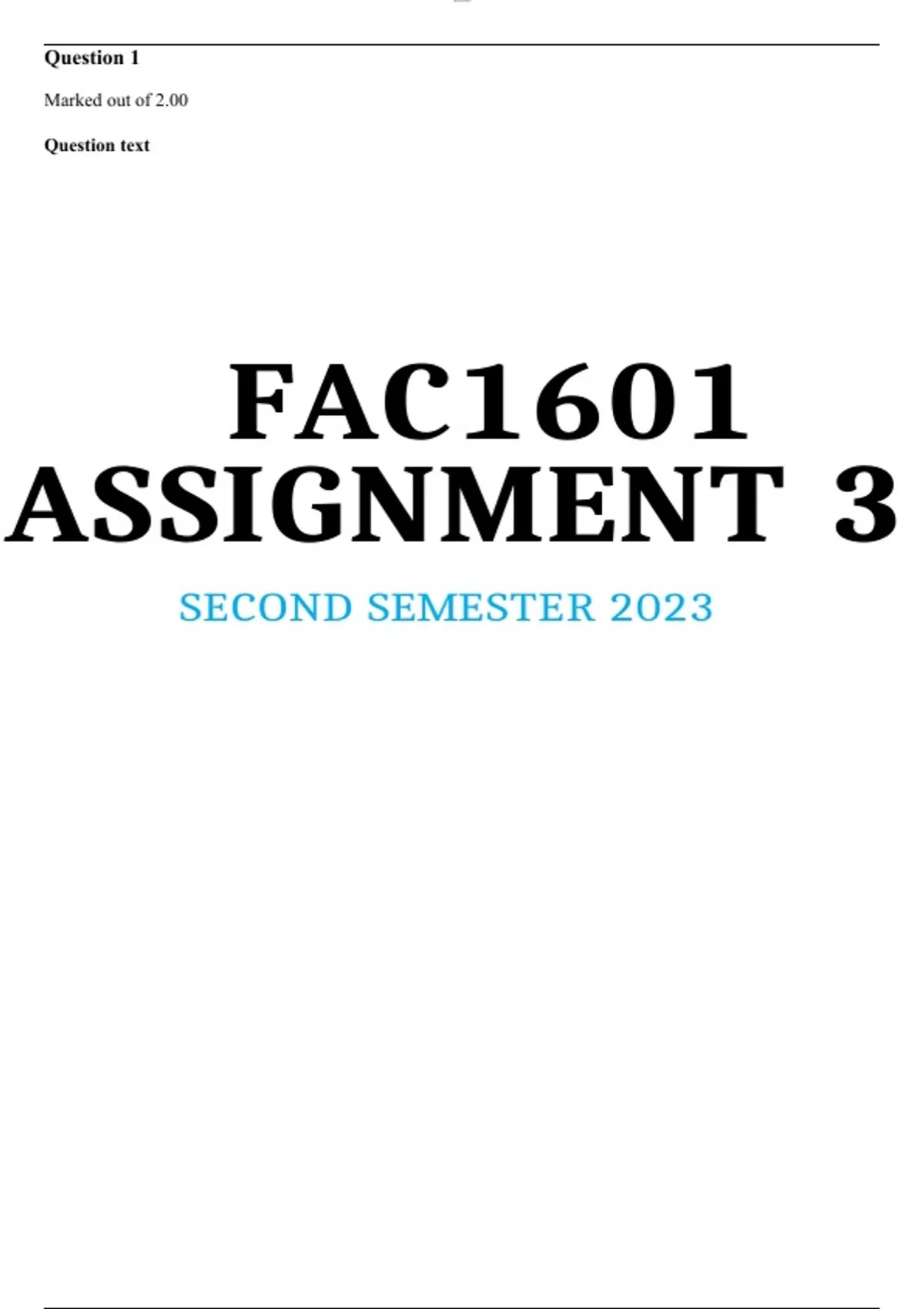 FAC1601 ASSIGNMENT 3 SECOND SEMESTER 2023