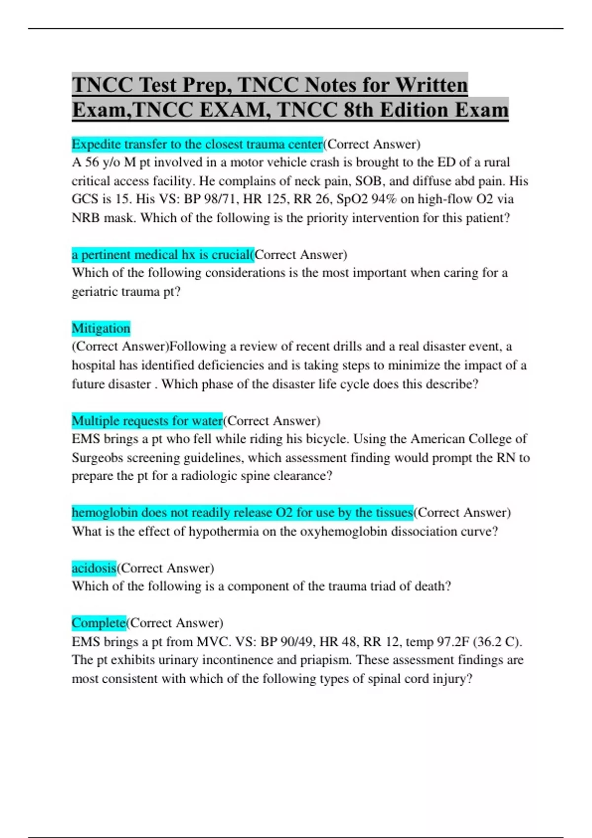 TNCC Test Prep, TNCC Notes for Written Exam,TNCC EXAM, TNCC 8th Edition Exam