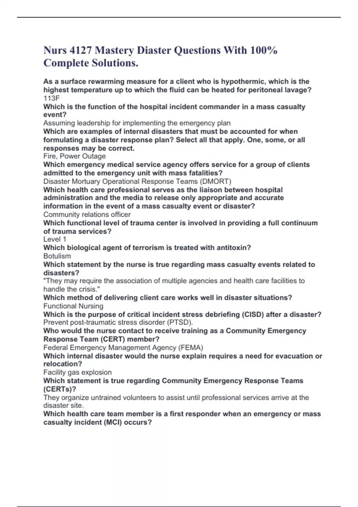 injured in a community disaster would need correction?