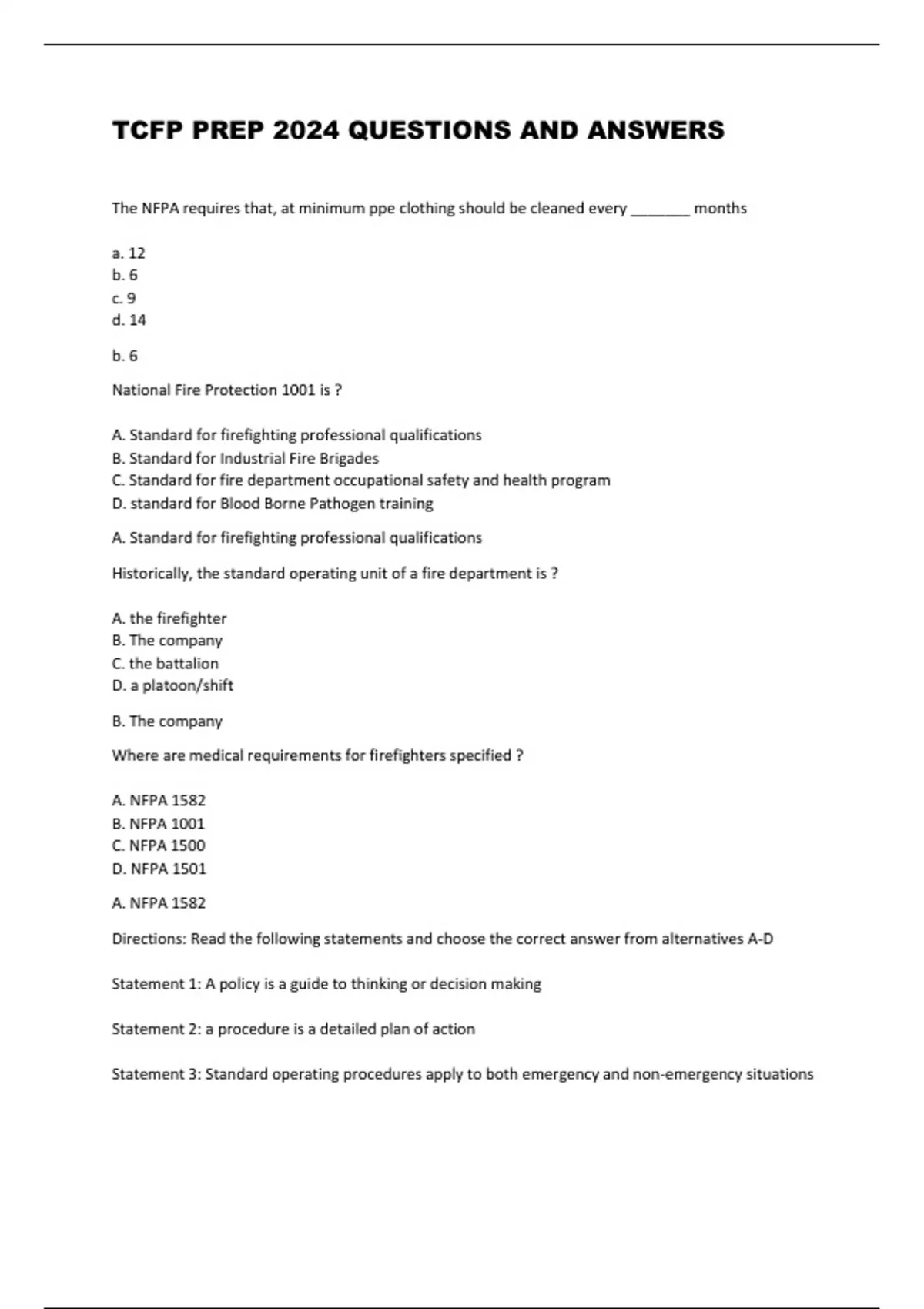 TCFP PREP 2024 QUESTIONS AND ANSWERS