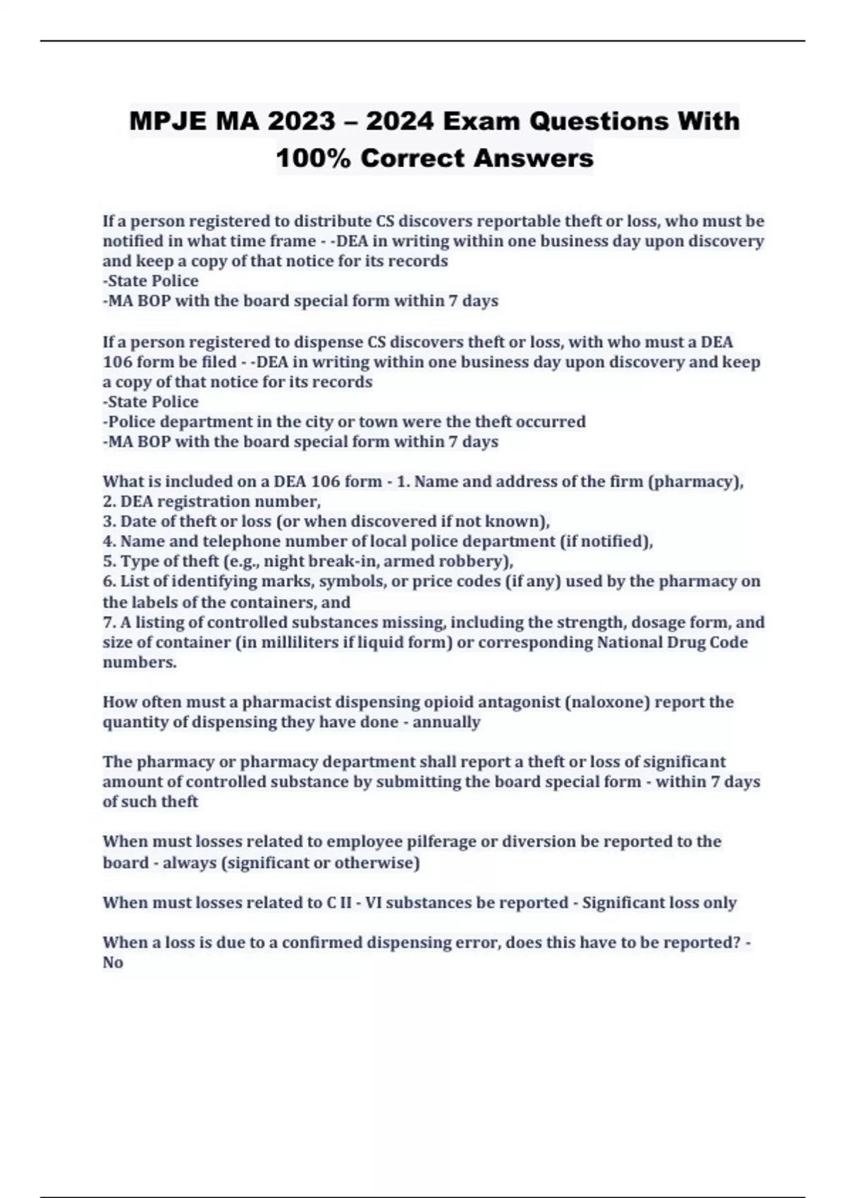 MA MPJE Examinations Study Bundle Questions and Answer Graded A+