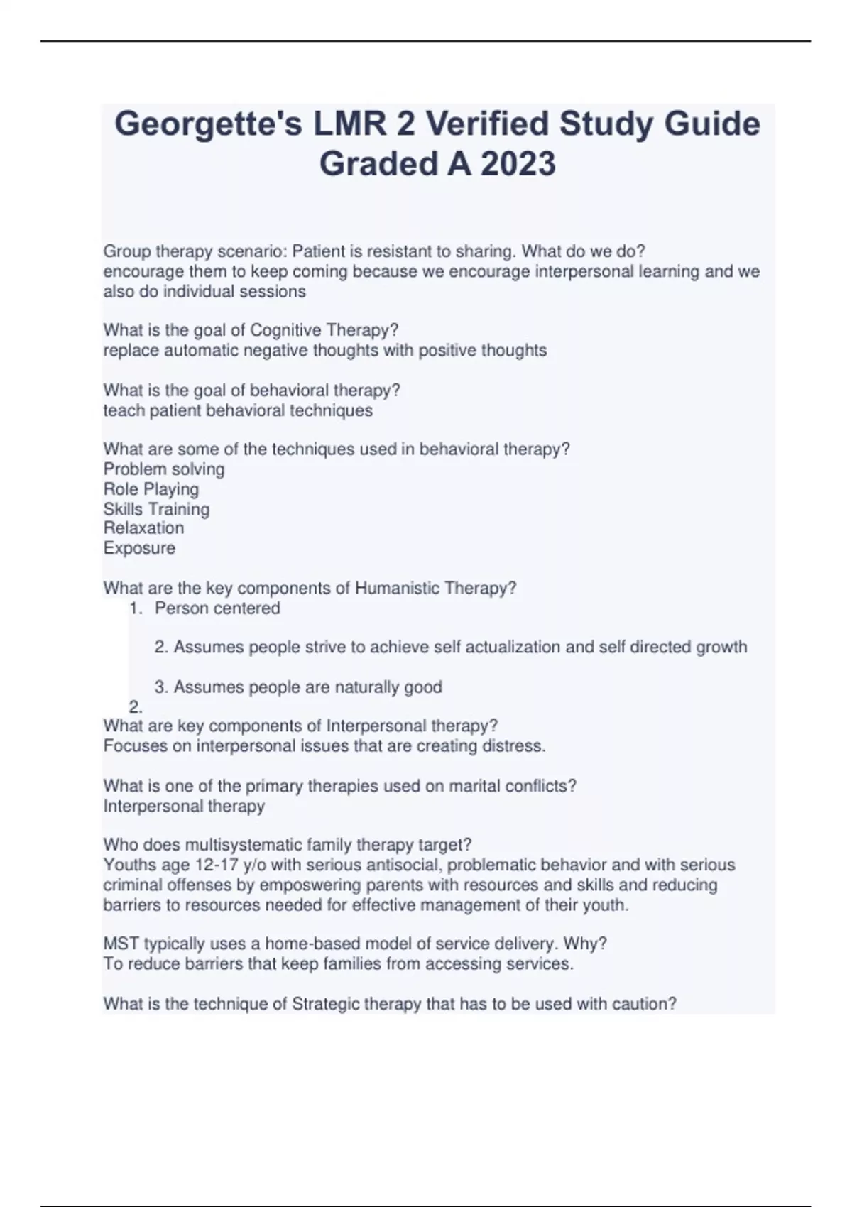 Georgette's LMR 2 Verified Study Guide Graded A 2023