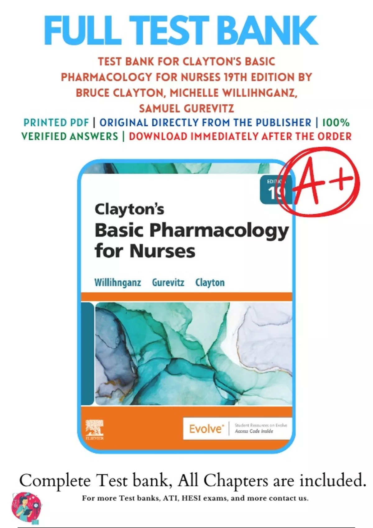 Test Bank For Clayton’s Basic Pharmacology for Nurses 19th Edition By Michelle J. Willihnganz (), 9780323796309, Chapter 1-48 All Chapters with Answers and Rationals