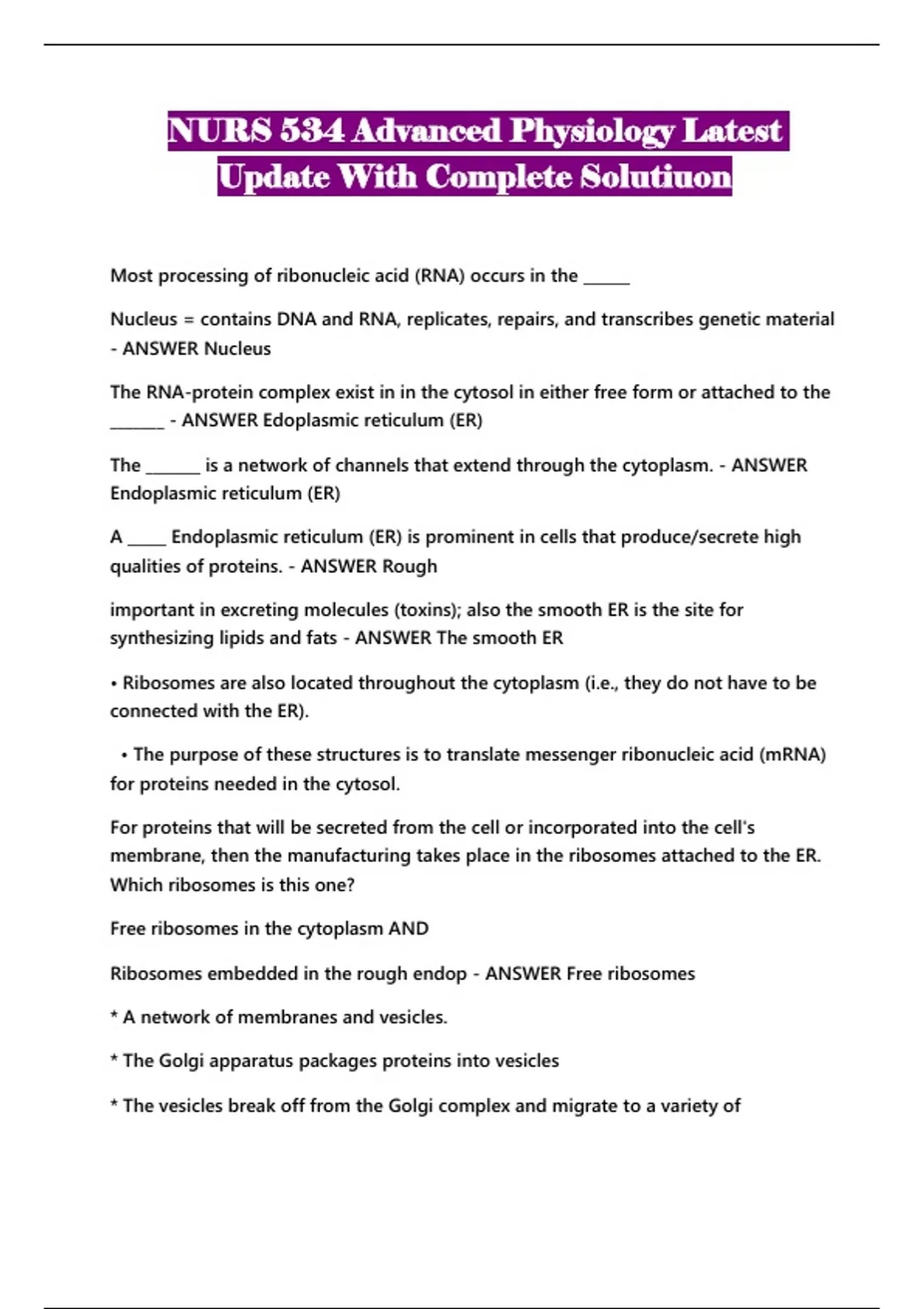 NURS 534 Advanced Physiology Latest Update With Complete Solutiuon...