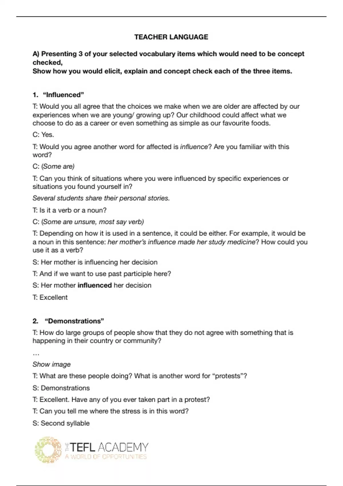 TEFL Academy. Assignment A. Teacher Language. TEFL Level 5. Merit Standard
