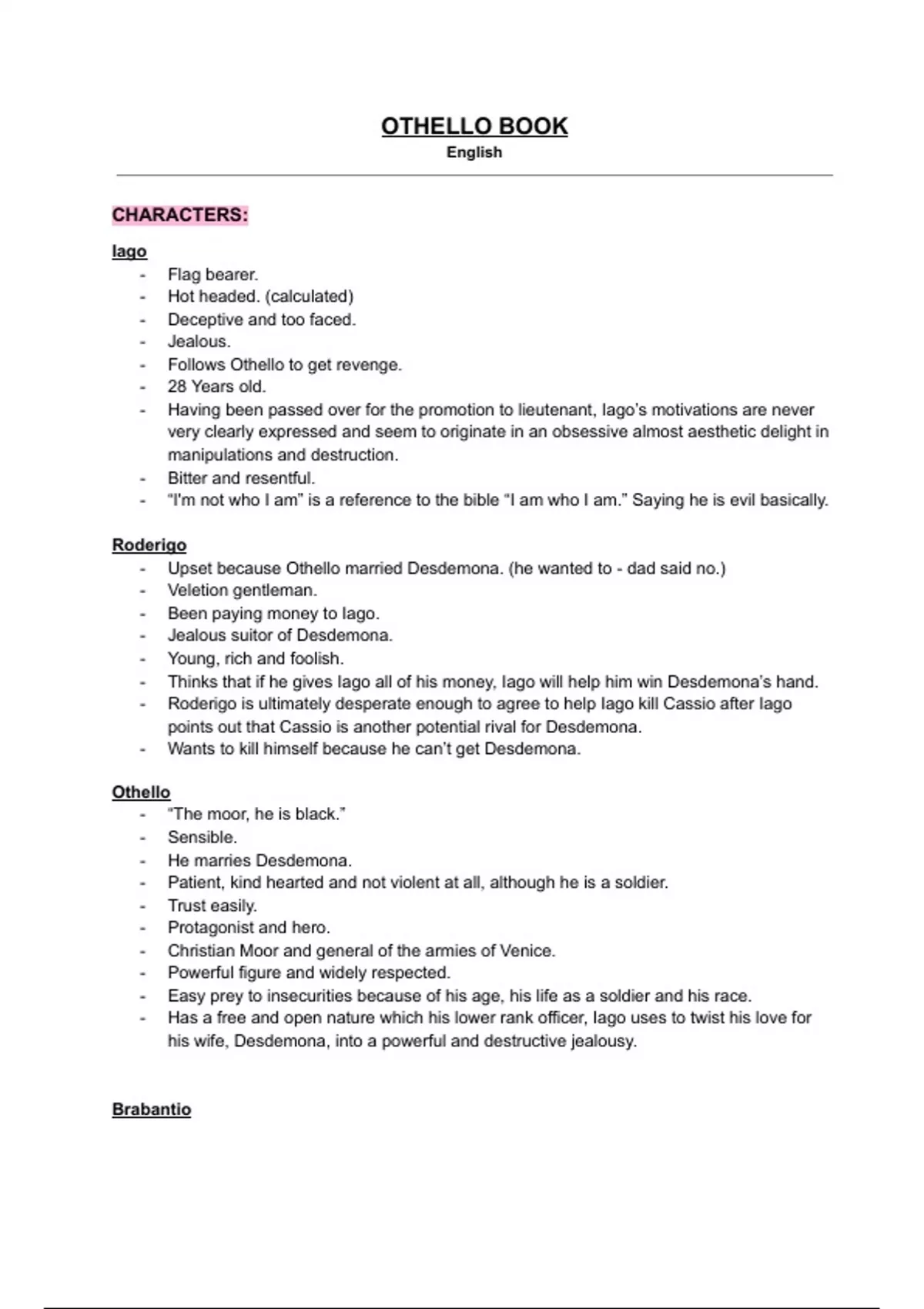 - Thinks that if he gives Iago all of his money, Iago will help him win Desdemona’s hand.