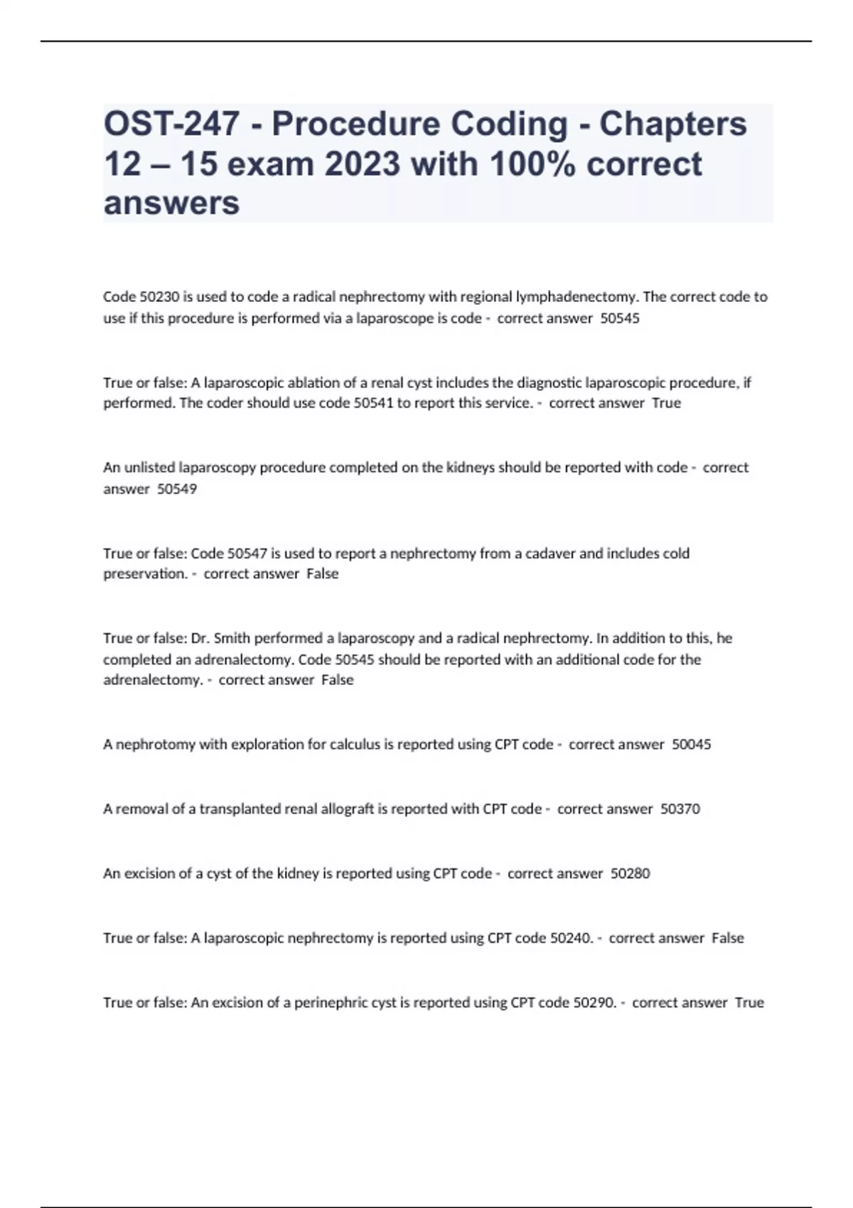 OST-247 - Procedure Coding - Chapters 12 – 15 exam 2023 with 100% correct answers