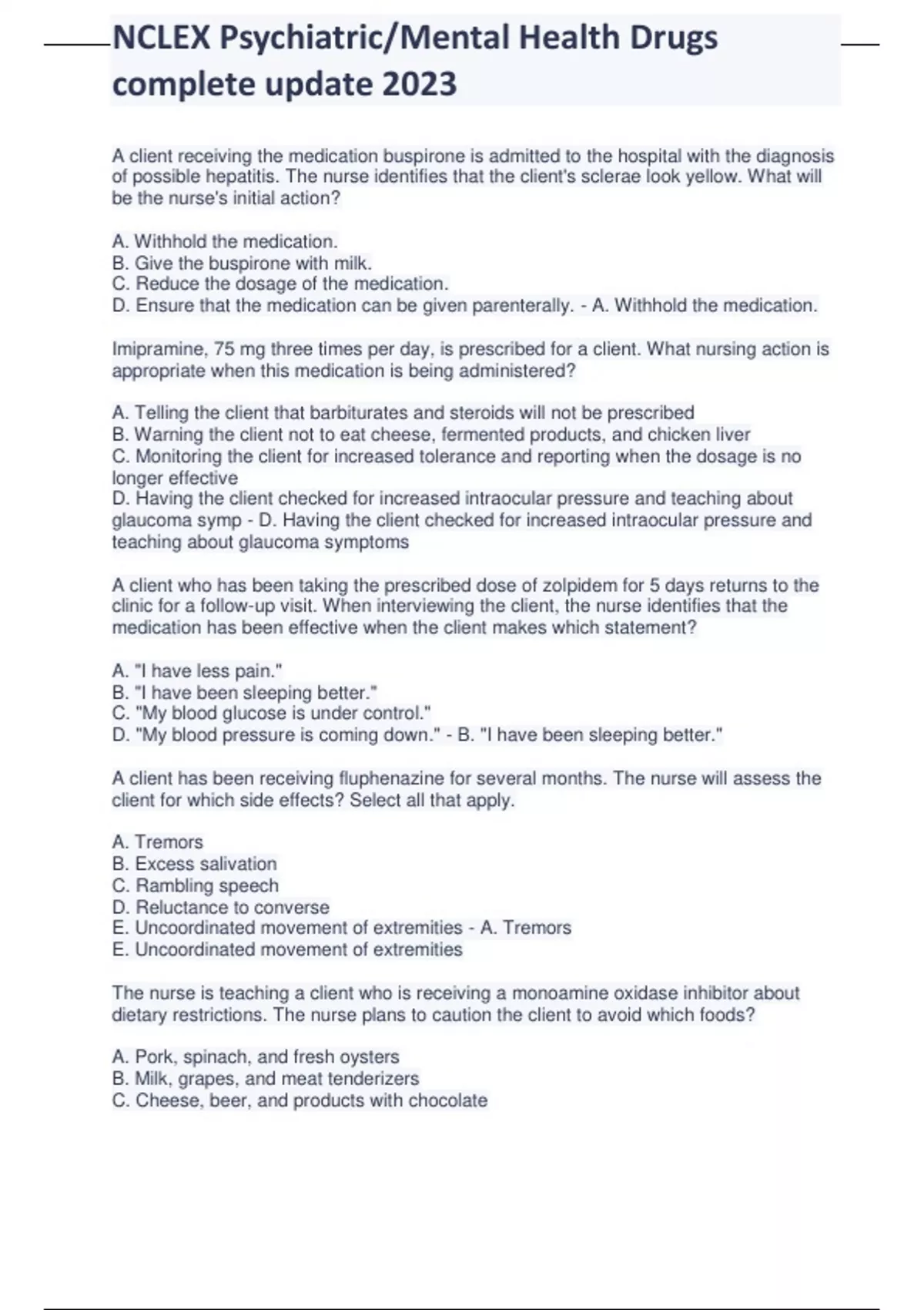 NCLEX Psychiatric Mental Health Drugs complete update 2023.