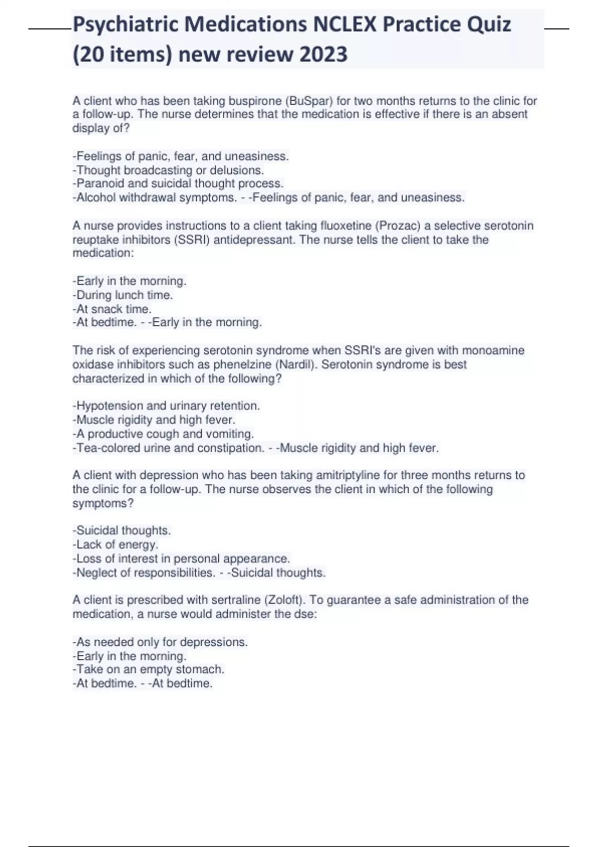 Psychiatric Medications NCLEX Practice Quiz (20 items) new review 2023.