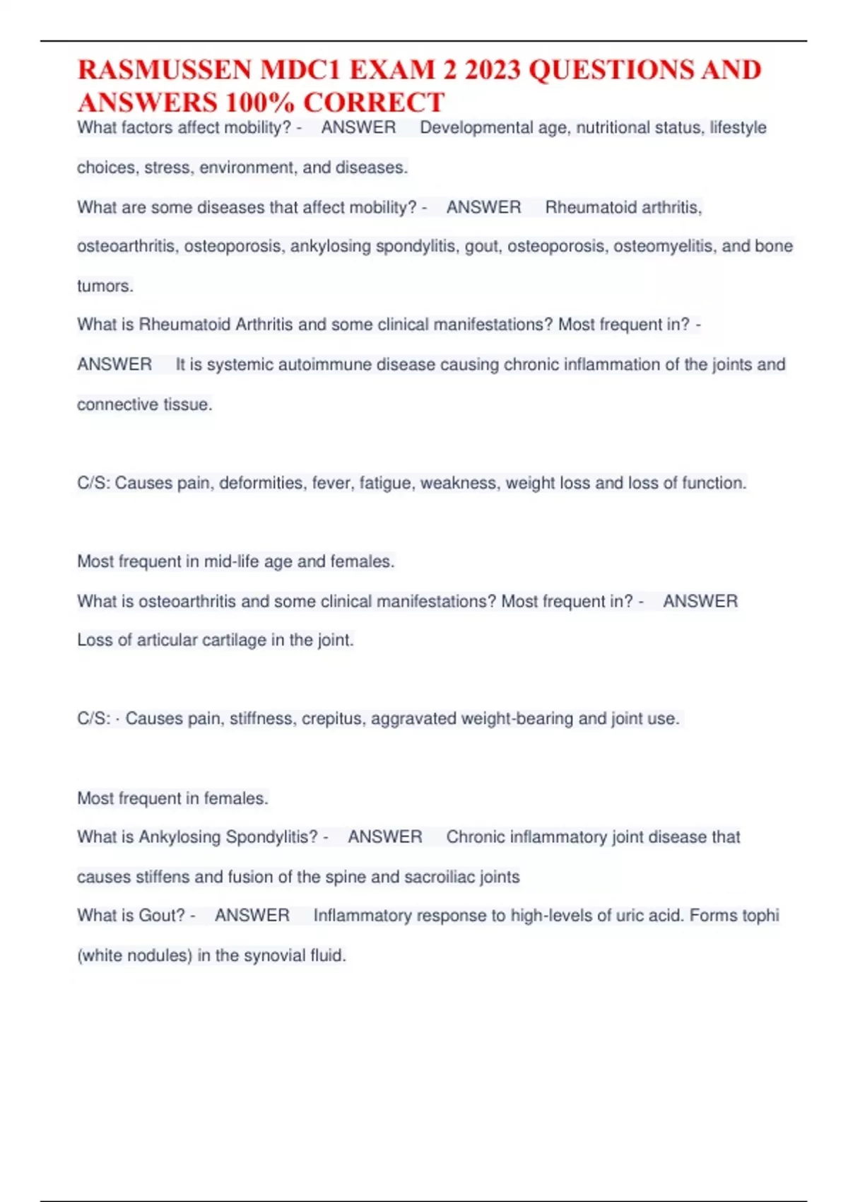 , RASMUSSEN MDC1 EXAM 2 2023 QUESTIONS AND