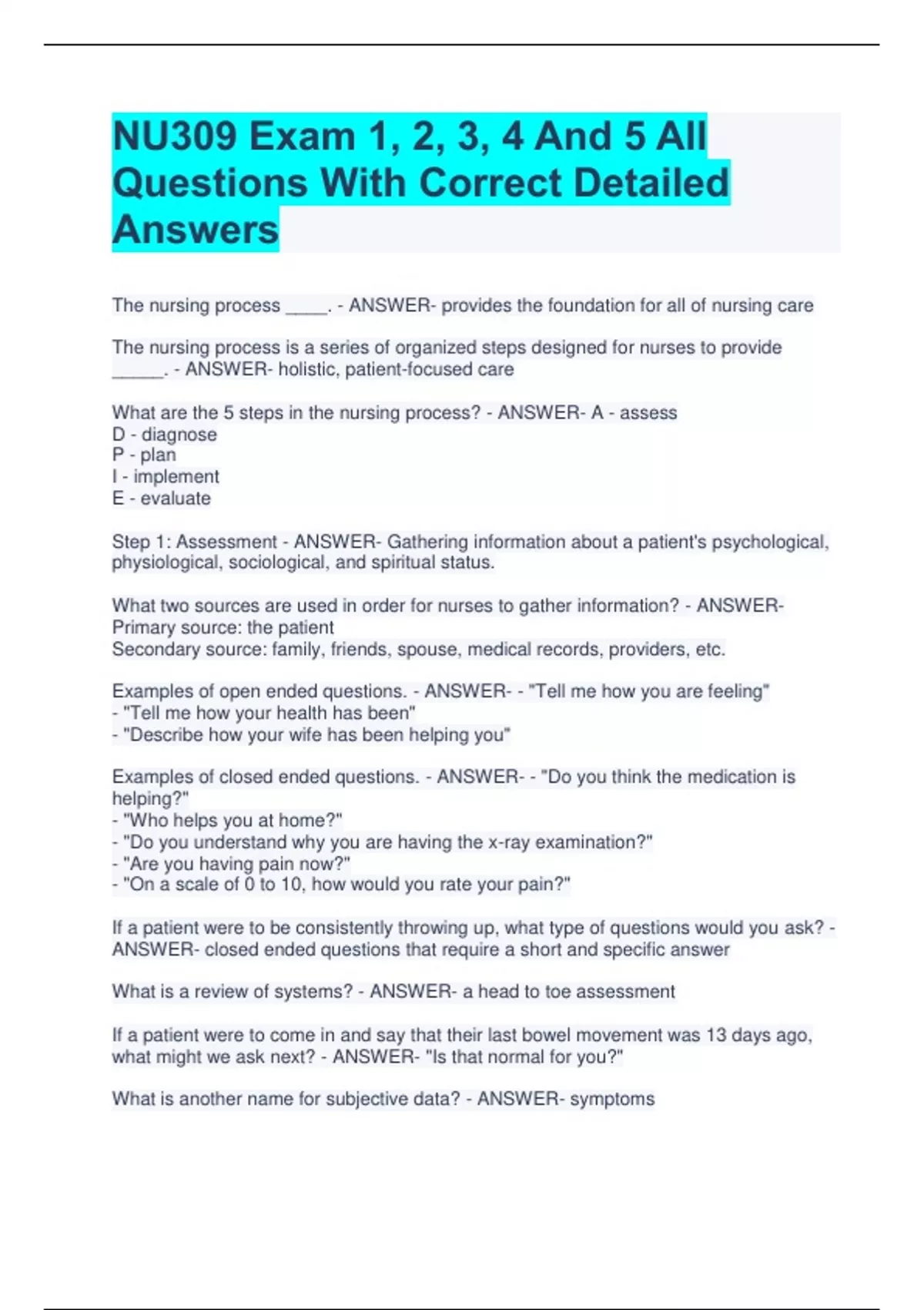 NU 309 Module 1 Test Questions With Correct Answers