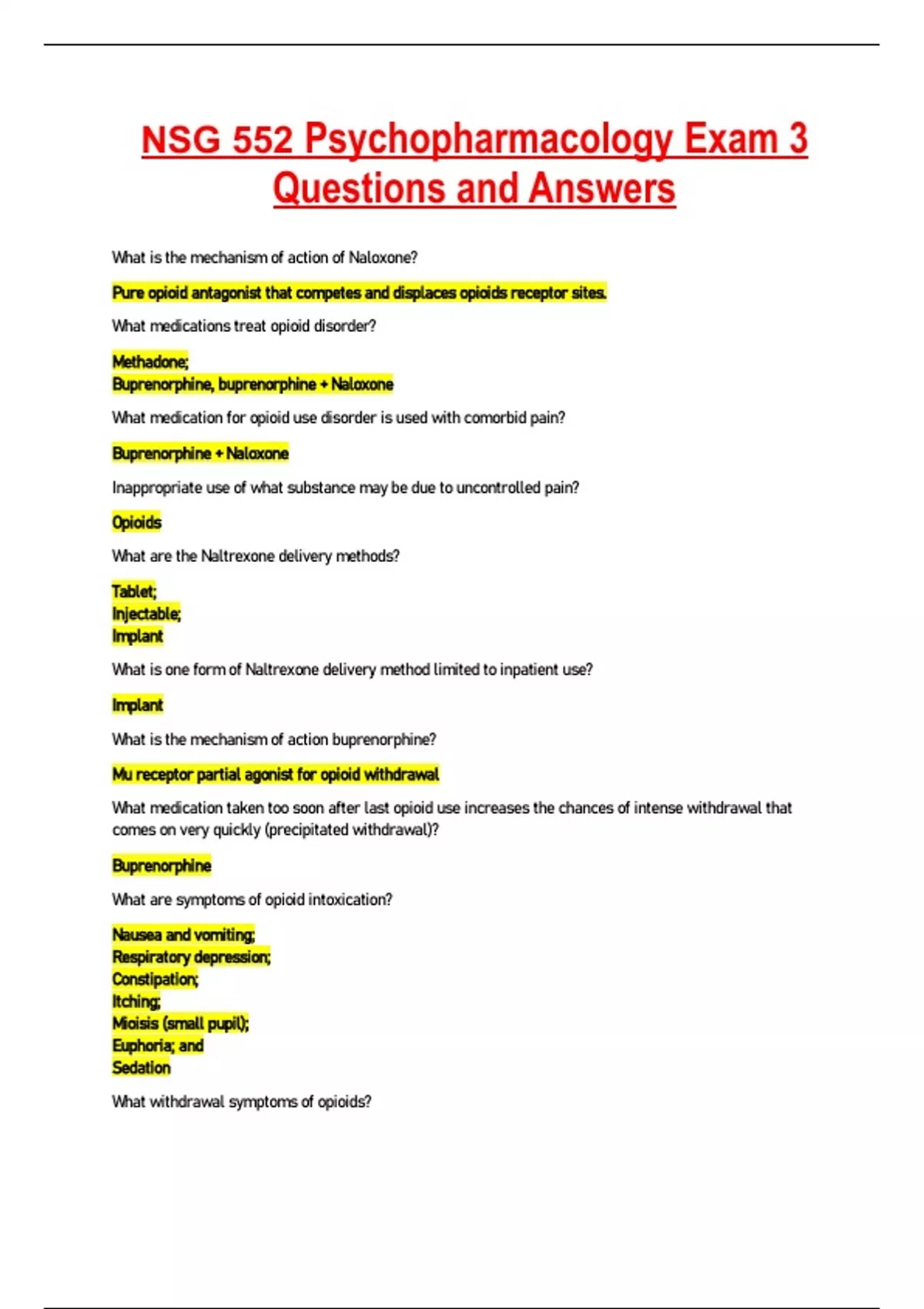 NSG 552 Psychopharmacology Exam 3 Questions and Answers
